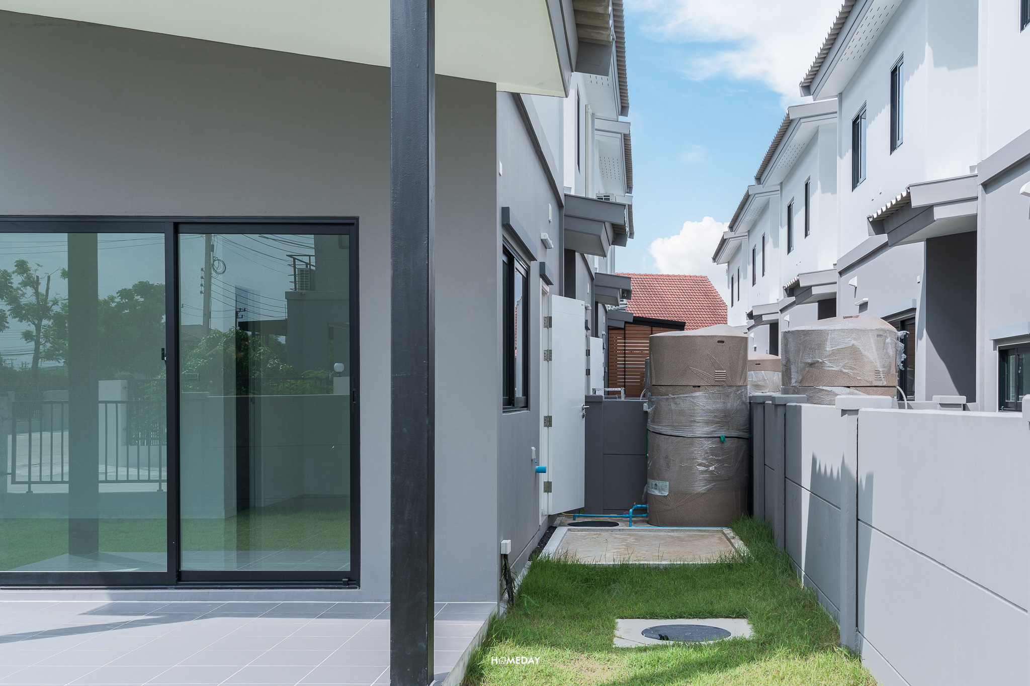 จุดเด่นของทาวน์โฮมหลังนี้คือกำแพงที่แยกออกจากกันอย่างอิสระ ทำให้ตัวบ้านได้ช่องแสงและความเป็นส่วนตัวเพิ่มมากขึ้น แถมยังได้พื้นที่สวนข้างบ้านมาอีกด้วยครับ ใครที่อยากได้บ้านขนาดเริ่มต้น อยู่อาศัย 1-2 ท่าน ต้องการพื้นที่ให้สัตว์เลี้ยงได้เดินเล่น หรือได้ปลูกต้นไม้เพิ่มสักหน่อย น่าจะถูกใจทาวน์โฮมหลังนี้กันอย่างแน่นอนครับ