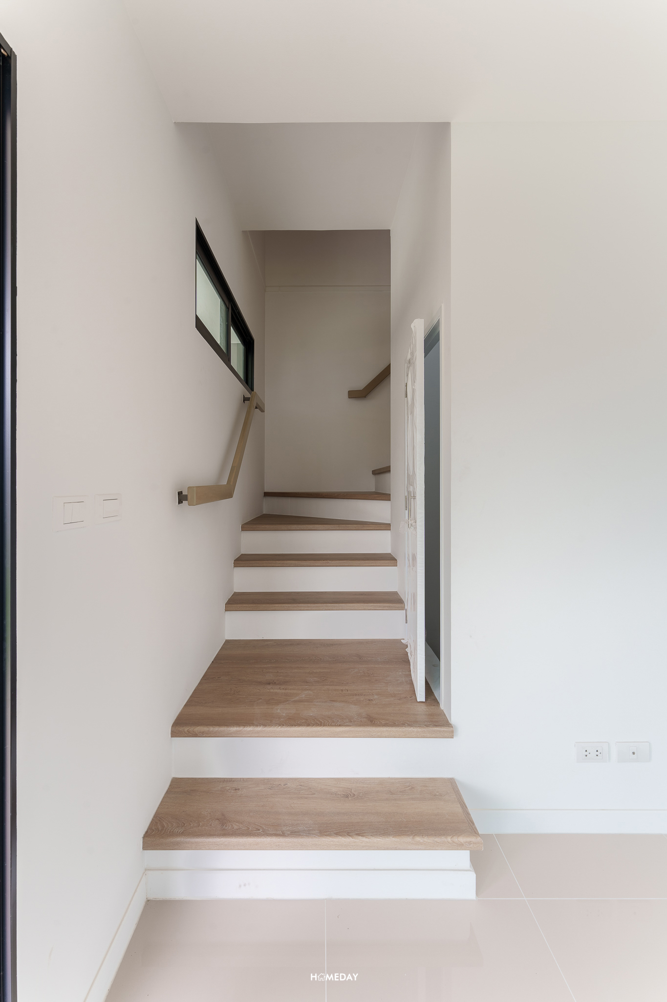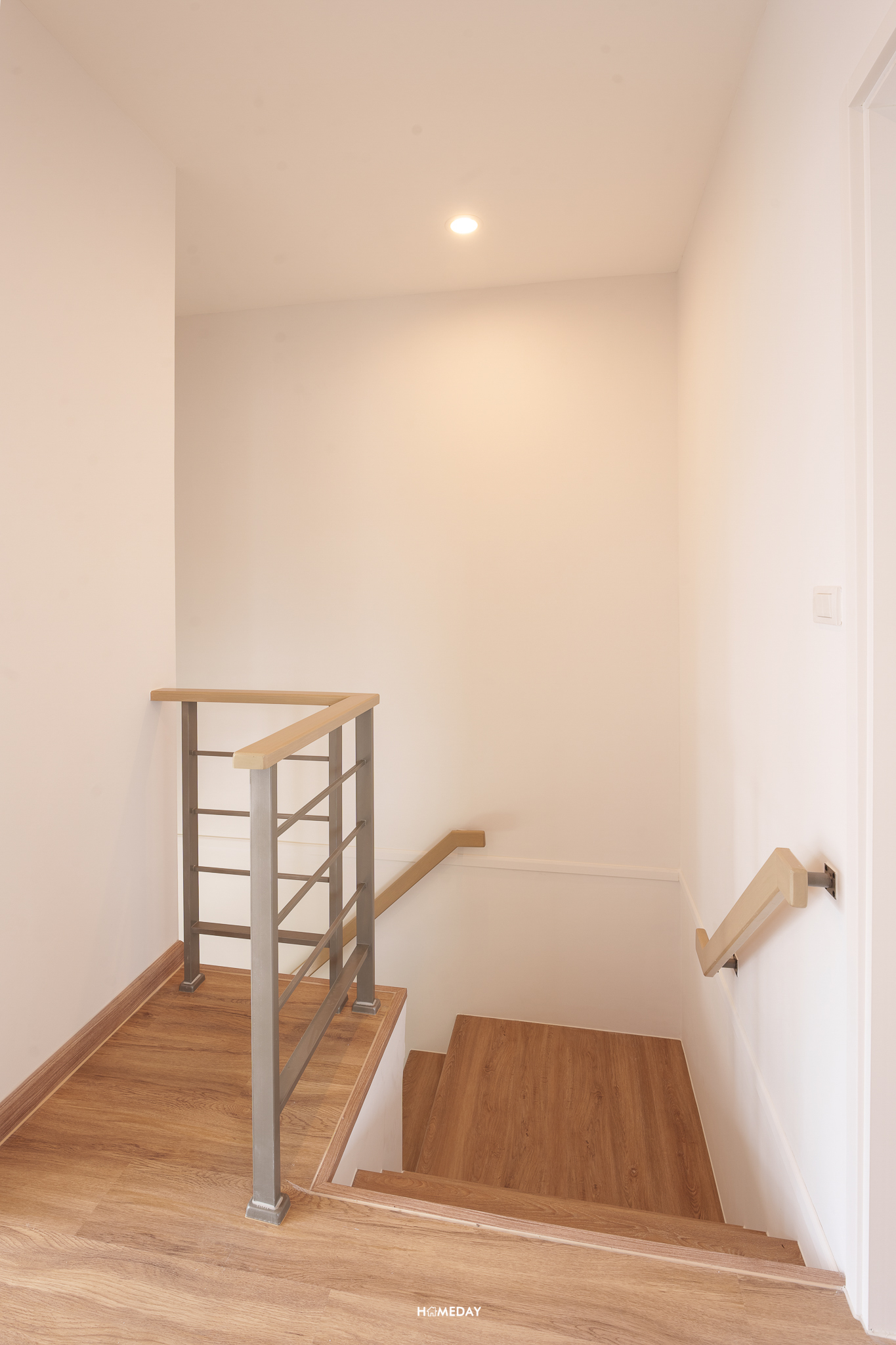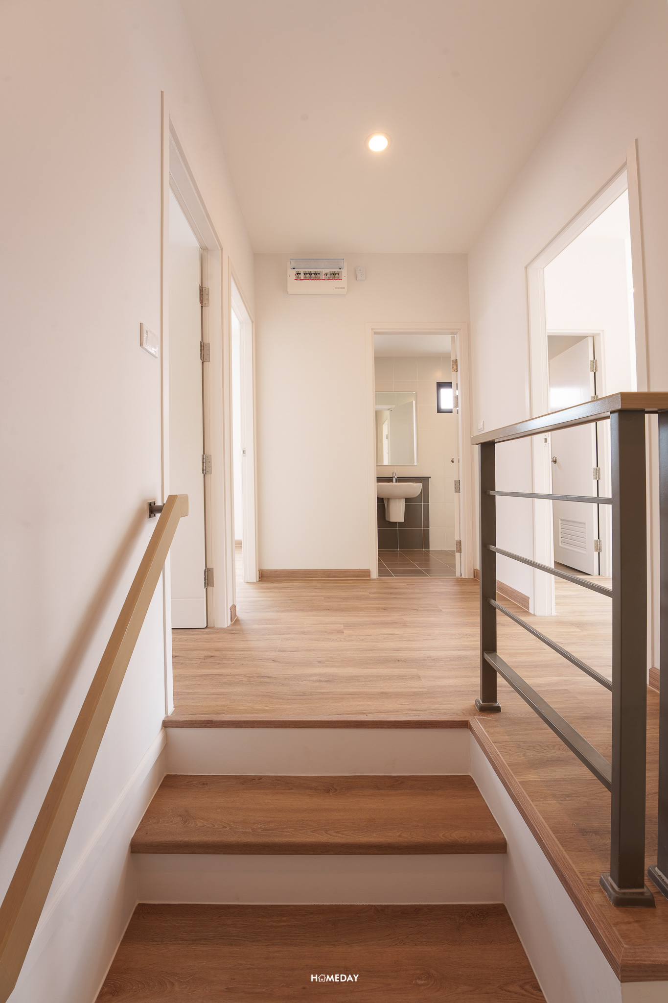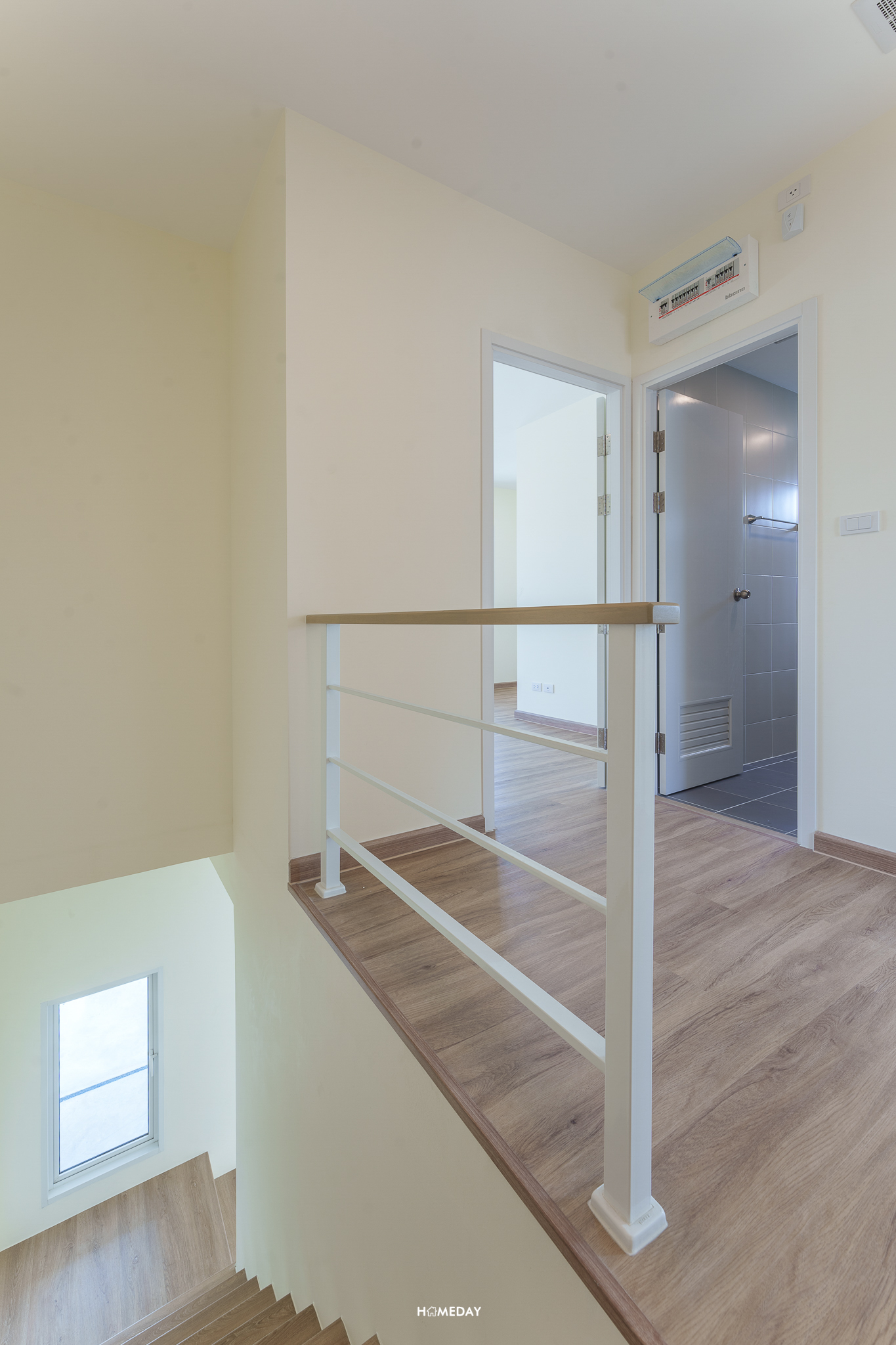 ขึ้นไปยังชั้น 2 ของบ้านกันครับ บริเวณโถงบันไดจะมีช่องแสงด้านล่างอยู่ 1 จุดทำให้โถงดูสว่าง ไม่มืดทึบในเวลากลางวัน ในส่วนของตู้ Load Center จะอยู่ตรงหน้าห้องน้ำ ที่มาพร้อมระบบ Air Flow ช่วยระบายอากาศภายในบ้านด้วยครับ