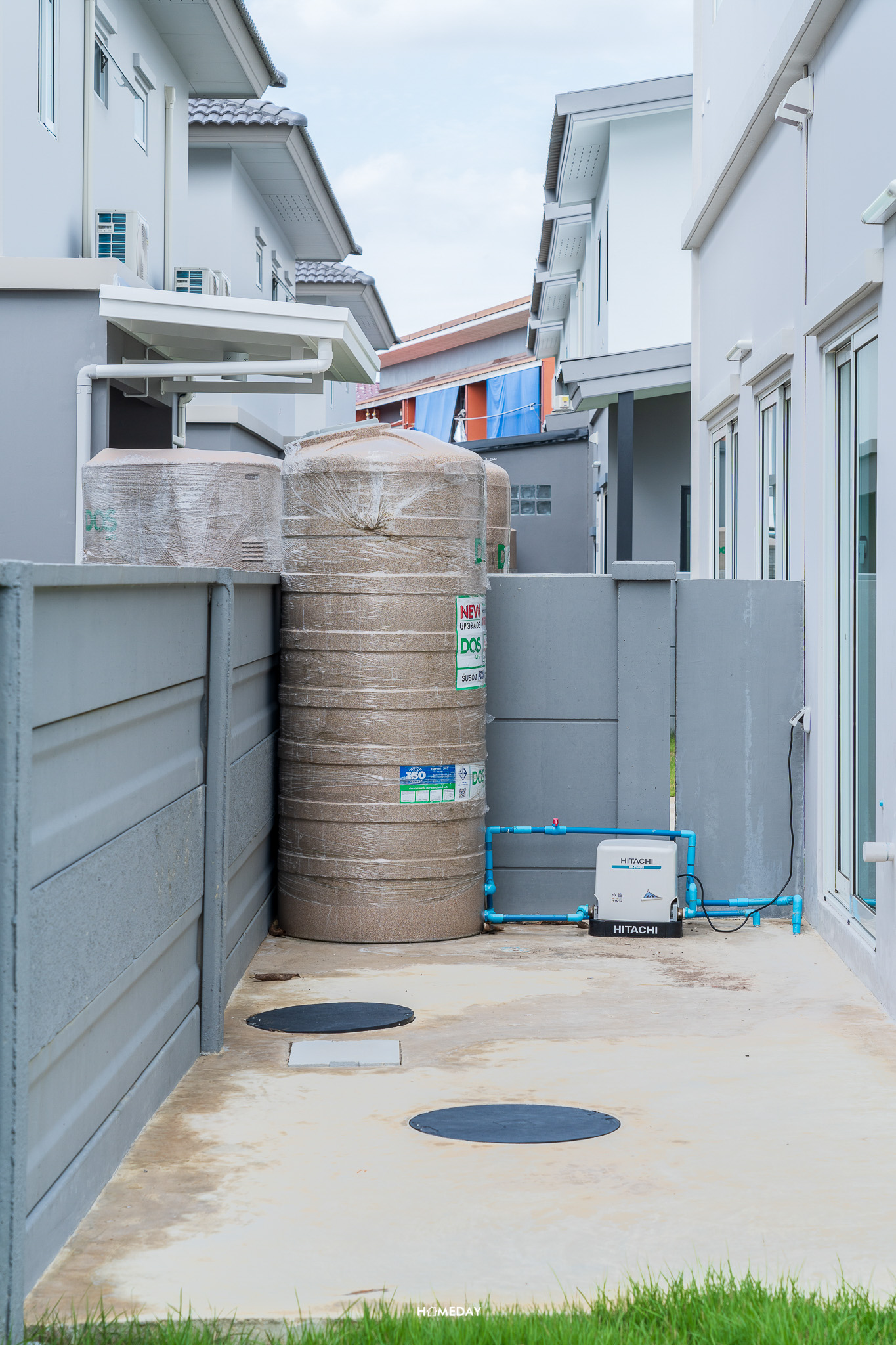 ด้านข้างได้บานหน้าต่างระบายอากาศ และประตูเปิดออกเชื่อมลานซักล้าง ด้านนอกสามารถใช้วางพวกเครื่องซักผ้าได้เลยครับ