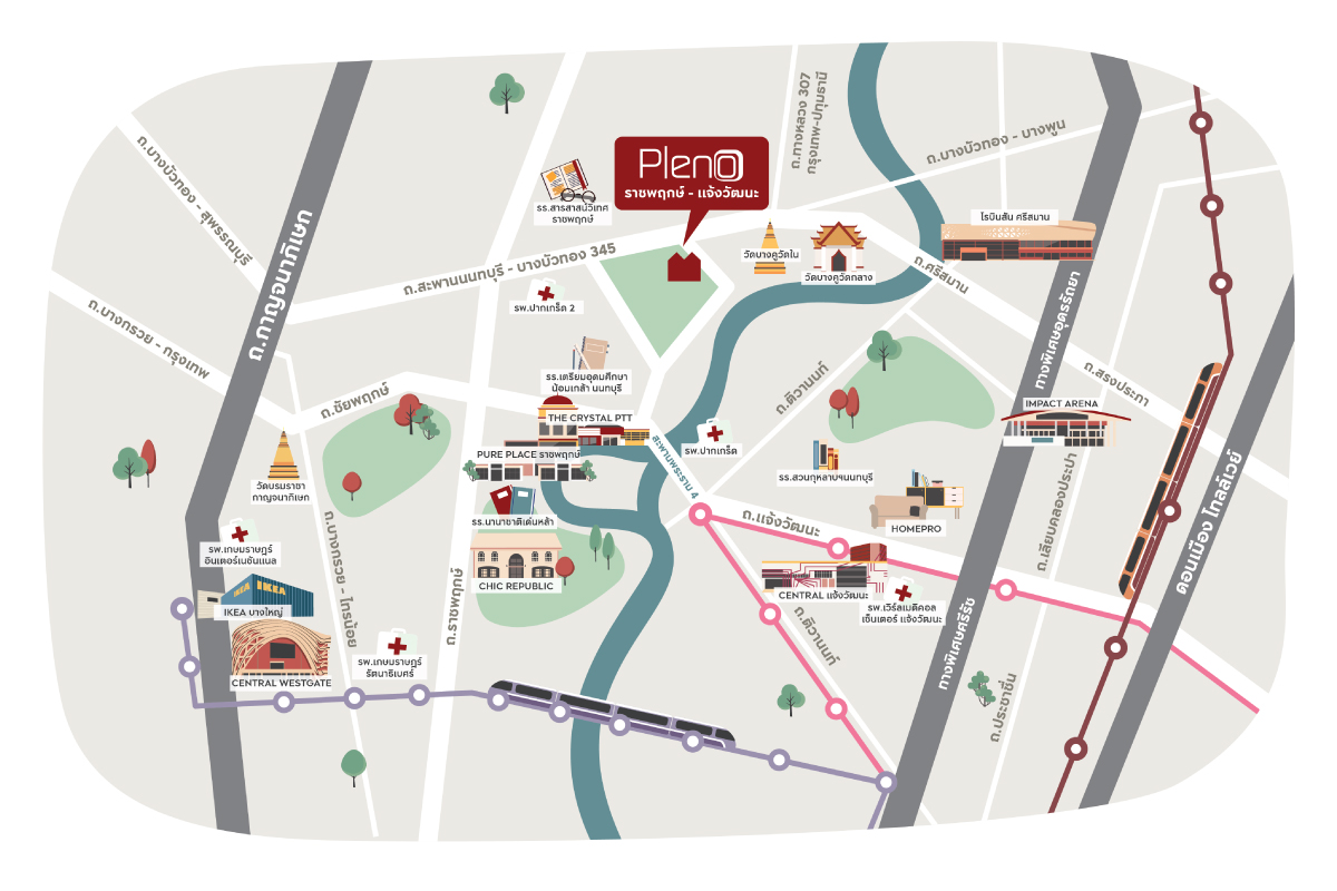 ทำเลที่ตั้ง แขวงบางบำหรุ เขตบางพลัด กรุงเทพมหานคร 10700 สิ่งอำนวยความสะดวกรอบโครงการ ภาพโครงการ แบบบ้าน การเดินทาง ถนน บรมราชชนนี 500 ม.คู่ขนานลอยฟ้า บรมราชชนนี 500 ม.ถนน สิรินธร 1.4 กม.รถไฟฟ้าสายสีน้ำเงินสถานีบางยี่ขัน 2.4 กม.รถไฟฟ้าสายสีแดงสถานีบางบำหรุ 3.9 กม.ถน
