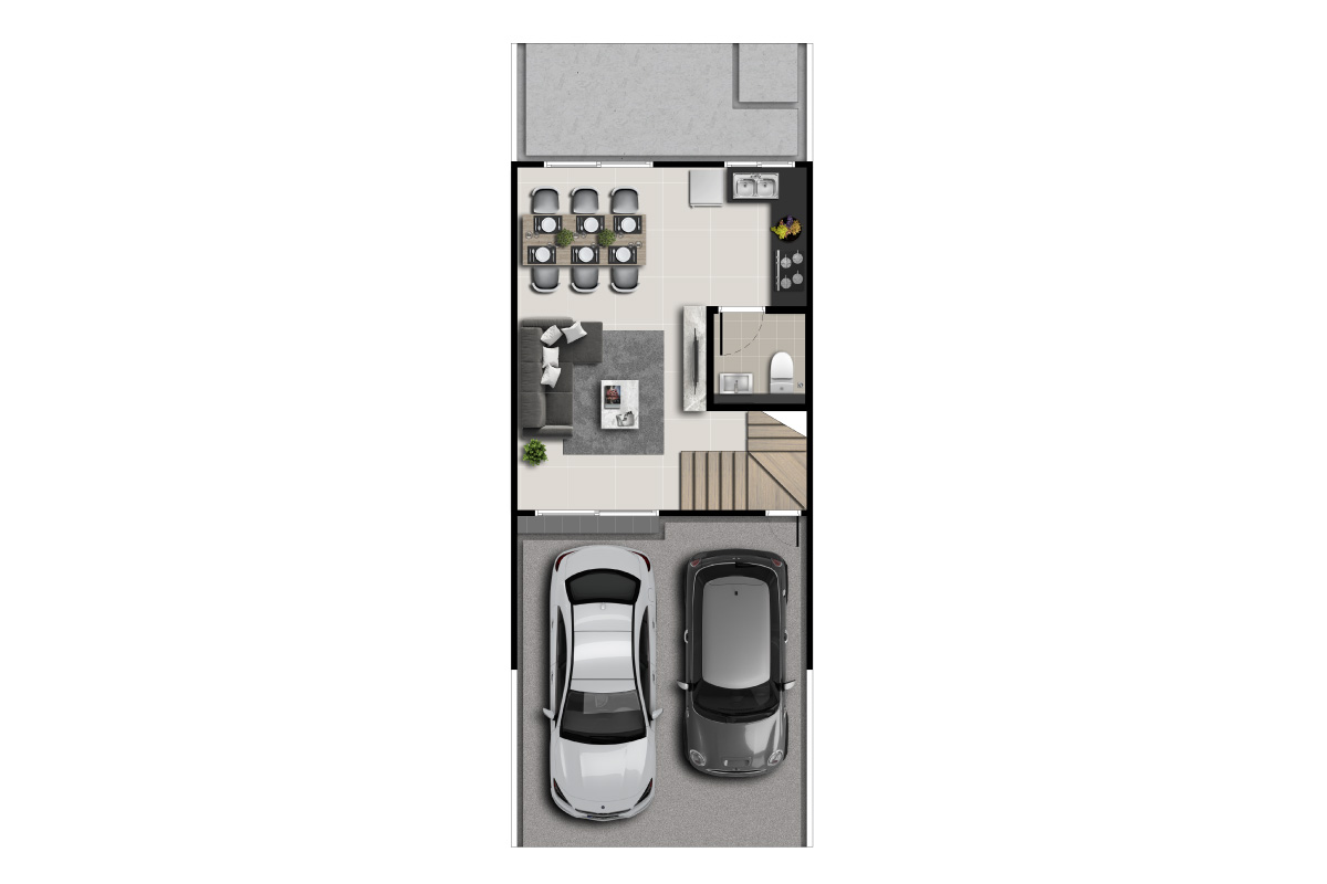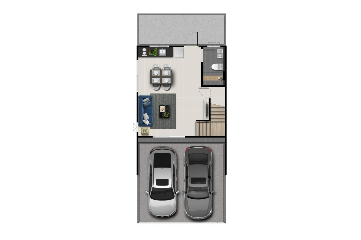 ทาวน์โฮม 2 ชั้น พื้นที่ใช้สอย 110 ตร.ม. 3 ห้องนอน 2 ห้องน้ำ ที่จอดรถ 2 คัน