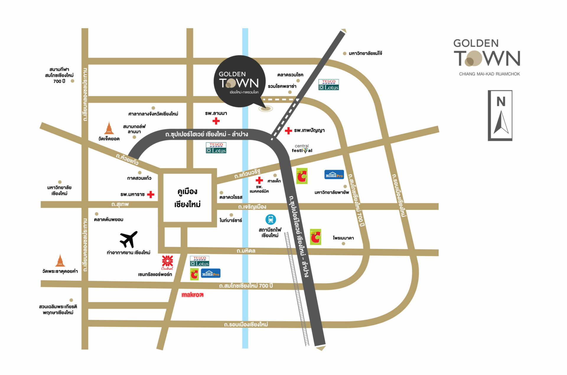 "โกลเด้น ทาวน์ เชียงใหม่-กาดรวมโชค (Golden Town Chiang Mai-Kad Ruamchok) EXTRA FUNCTION เหนือกว่าทาวน์โฮมทั่วไป ที่ให้มากถึง 4 ห้องนอน 3 ห้องนํ้า ห้องนอนใหญ่มีห้องนํ้าในตัว พร้อมเพิ่มฟังก์ชันพิเศษ อาทิ ห้องพระ* ห้องอเนกประสงค์ชั้นล่าง ที่สามารถปรับเปลี่ยน ให้เป็นห้องต่างๆ ได้ตามความต้องการ รวมถึงนวัตกรรม ครัวไทย* Golden Kitchen ที่มีพร้อมในทุกหลัง EXTRA SPEC ยกระดับมาตรฐานวัสดุเทียบเท่าบ้านเดี่ยว ด้วยประตูหน้าต่าง UPVC พร้อมโคมไฟ Downlight ทั้งหลัง ห้องนํ้าเลือกใช่ สุขภัณฑ์แบรนด์ชั้นนําระดับพรีเมียม กระเบื้องห้องนํ้าดีไซน์สวย เป็นเอกลักษณ์ ฝ้าเพดานสูงเกือบ 3 เมตร ให้ความโปร่ง โล่งสบายอากาศถ่ายเทสะดวก"