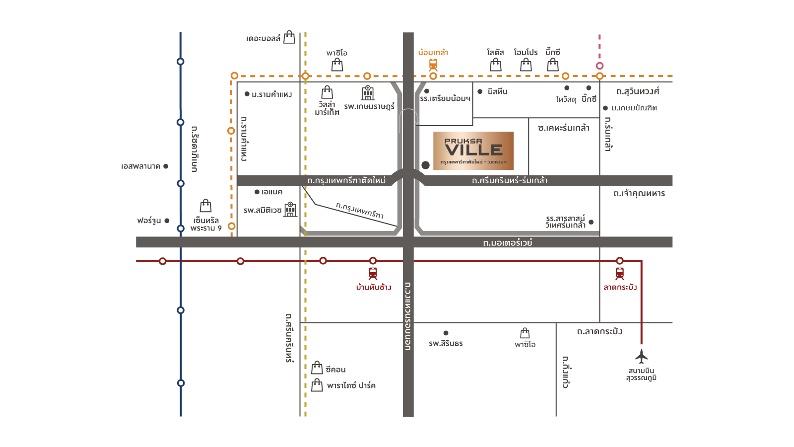 ทำเลที่ตั้ง 59 ตำบลบ้านกลาง อำเภอเมืองปทุมธานี ปทุมธานี 12000 สิ่งอำนวยความสะดวกรอบโครงการ แบบบ้าน : พฤกษ์วนา หน้ากว้าง 5.0 เมตร 1 ที่จอดรถ แบบบ้าน : พฤกษ์พรรณา