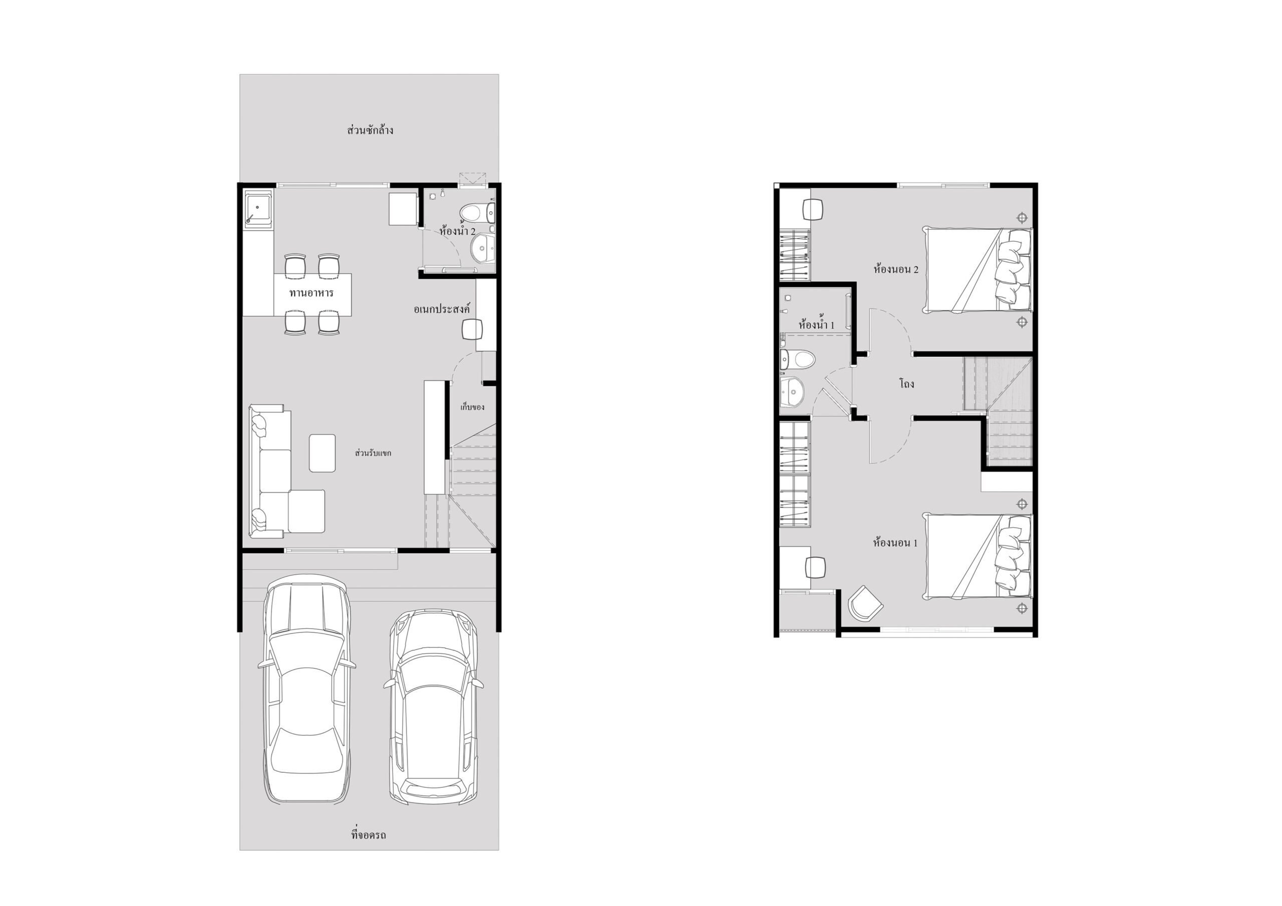 ขนาดที่ดิน ~18 ตร.ว. พื้นที่ใช้สอย ~113 ตร.ม. 2ห้องนอน 2ห้องน้ำ 2ที่จอดรถ