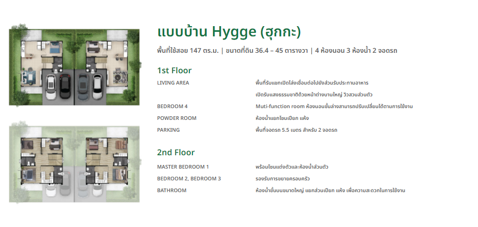 แบบบ้าน : WAYFARING หน้ากว้าง 5.7 x 13.0 ม. พื้นที่ใช้สอย 115.9 ตร.ม. ขนาดที่ดินมาตรฐาน 18.50 ตร.ว.ห้องนอน 3 ห้อง ห้องอเนกประสงค์ 1 ห้อง ห้องน้ำ 2 ห้อง ที่จอดรถ 2 คัน