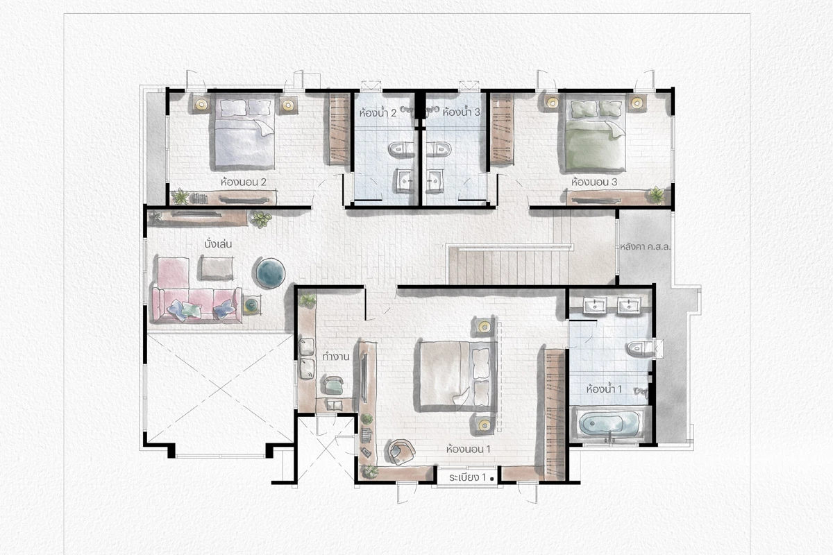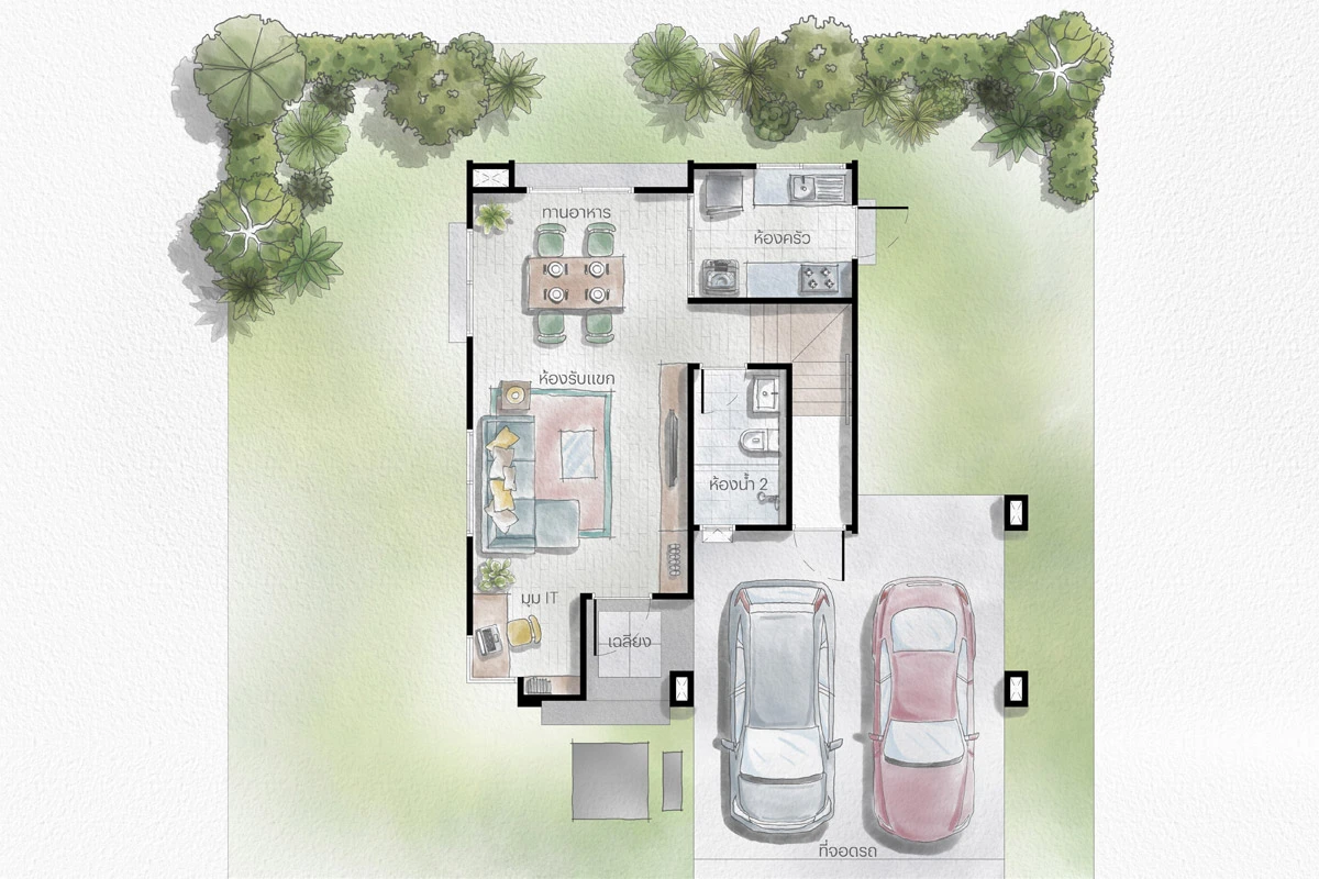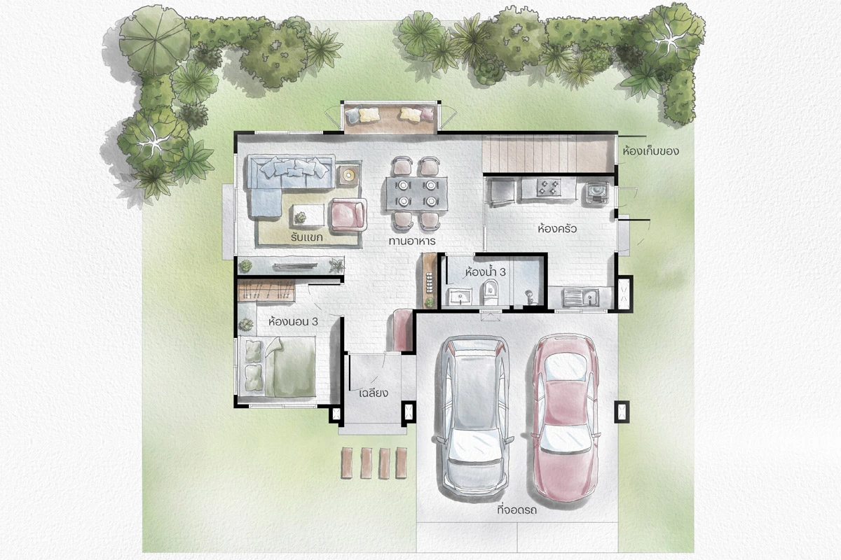 แบบบ้าน : QUEEN ประเภท : บ้านแฝด 2 ชั้นที่ดินเริ่มต้น 37.1 ตารางวาพื้นที่ใช้สอย 161.2 ตารางเมตร แบบบ้าน แบบบ้าน : GRAND ประเภท : บ้านเดี่ยว 2 ชั้นที่ดินเริ่มต้น 50.6 ตารางวาพื้นที่ใช้สอย 199.5 ตารางเมตร