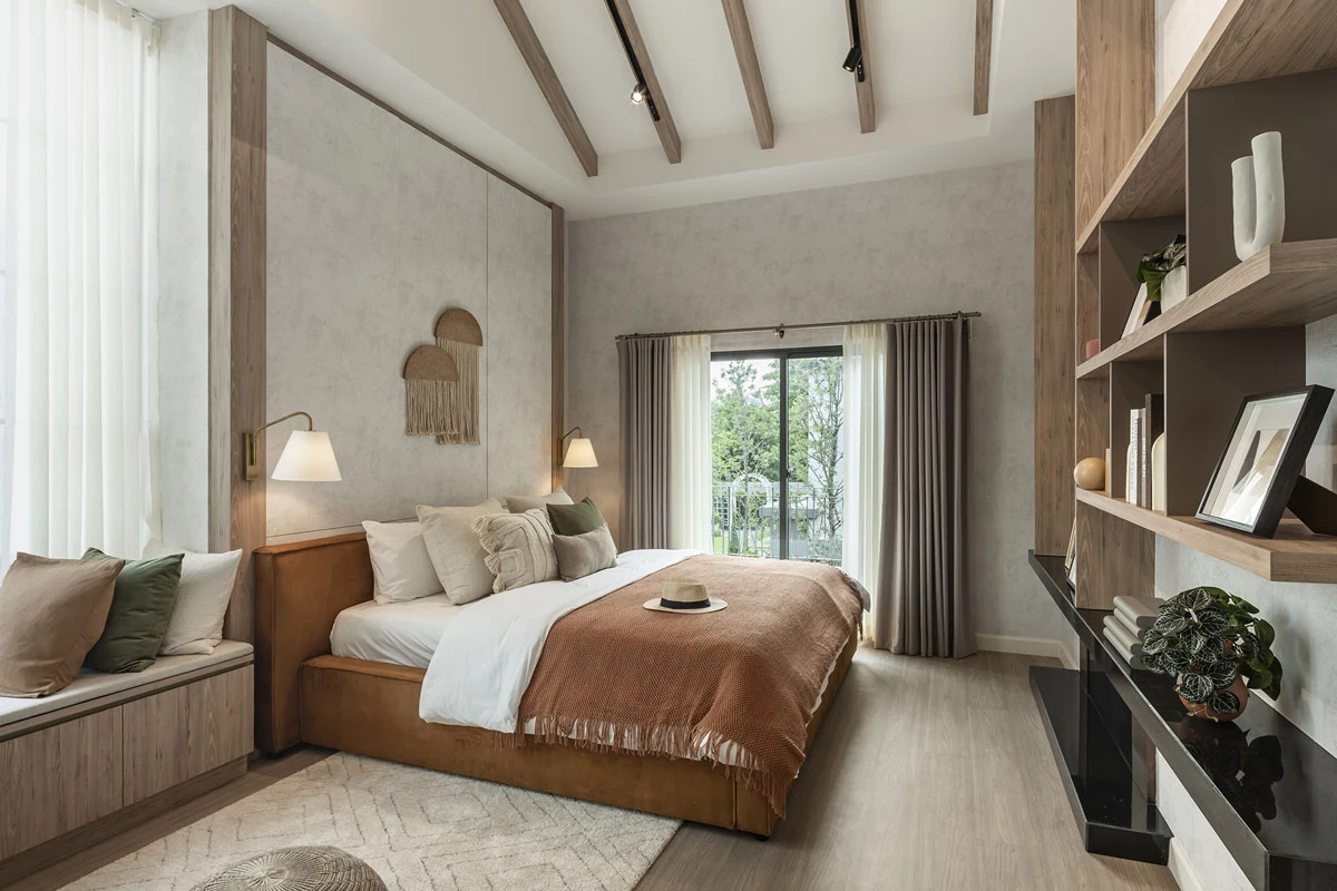 1. GABLE ROOF หลังคาทรงจั่ว ให้ความรู้สึกอบอุ่น2. FRAME PATTERN LONG WINDOW ช่องแสงธรรมชาติบานใหญ่ พร้อมกระจกเขียวตัดแสง ลดทอนความร้อน3. BAY WINDOW ดีไซน์สวยที่มาพร้อมฟังก์ชันการใช้งาน4. OUTDOOR WALL LAMP โคมไฟกิ่งหน้าบ้าน5. ENTRANCE FOYER โถงทางเข้าบ้าน6. SECURITY SYSTEM ระบบรักษาความปลอดภัยในตัวบ้าน