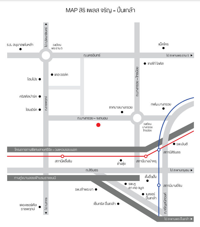 ทางพิเศษศรีรัช-วงแหวนรอบนอก ด่านบางบำหรุ 2.5 กม.รถไฟฟ้าชานเมือง ตลิ่งชัน 6.4 กม.รถไฟฟ้า MRT บางอ้อ 8.6 กม.