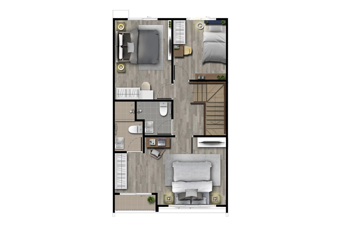 พื้นที่ใช้สอย 118 ตรม. ทาวน์โฮมหน้ากว้าง 5.7 เมตร ฟังก์ชัน 3 ห้องนอน 3 ห้องน้ำ พร้อมห้องอเนกประสงค์ล่าง 1 ห้อง ที่จอดรถ 2 คัน