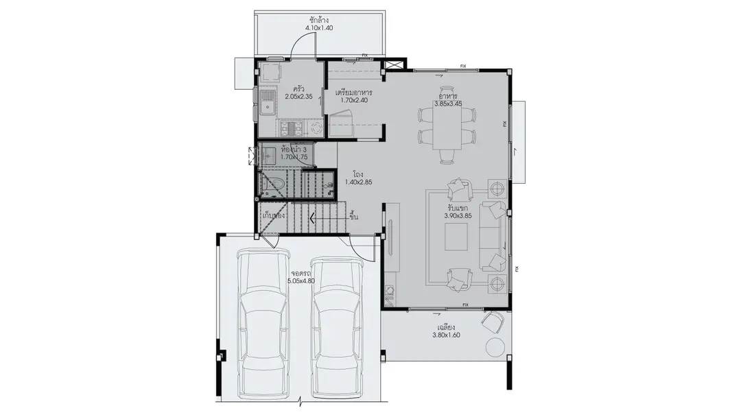 แบบบ้าน : JUNIPER หน้ากว้าง 5.7 x 13.0 ม. พื้นที่ใช้สอย 115.9 ตร.ม. ขนาดที่ดินมาตรฐาน 18.50 ตร.ว.ห้องนอน 3 ห้อง ห้องอเนกประสงค์ 1 ห้อง ห้องน้ำ 2 ห้อง ที่จอดรถ 2 คัน
