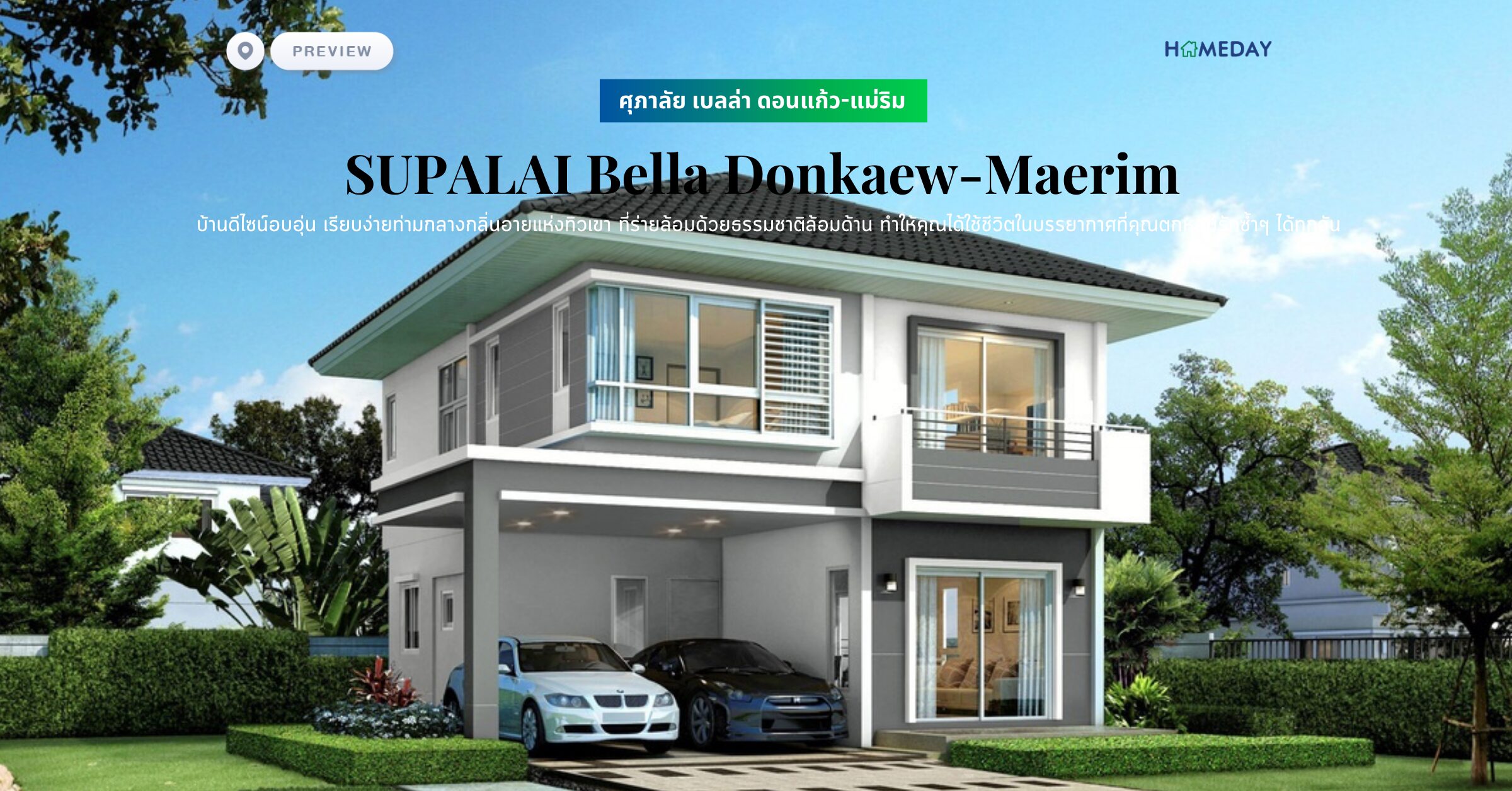 "โครงการ ศุภาลัย เบลล่า ดอนแก้ว-แม่ริม (SUPALAI Bella Donkaew-Maerim) บ้านดีไซน์อบอุ่น เรียบง่ายท่ามกลางกลิ่นอายแห่งทิวเขา ให้คุณสัมผัสสุนทรียภาพแห่งการใช้ชีวิตที่แตกต่างไม่เหมือนใคร ลงตัวกับบ้านดีไซน์โดดเด่น ทันสมัย เพราะเราเข้าใจไลฟ์สไตล์ที่แตกต่างกันของทุกครอบครัว ที่ร่ายล้อมด้วยธรรมชาติล้อมด้าน ทำให้คุณได้ใช้ชีวิตในบรรยากาศที่คุณตกหลุมรักซ้ำๆ ได้ทุกวัน"
