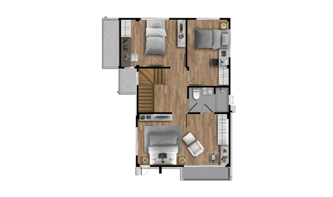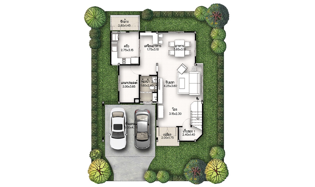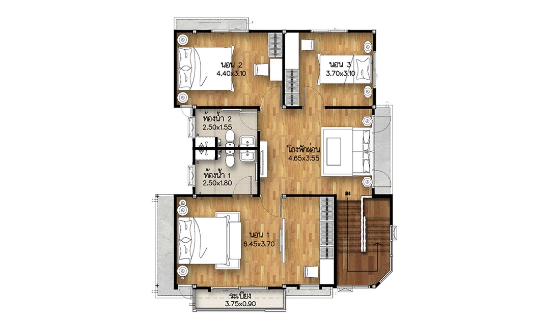 ทำเลที่ตั้ง ถนนหนองยายรัก 1 ต.นาป่า อ.เมืองชลบุรี จ.ชลบุรี 2000 แบบบ้าน : TH5 บ้าน 2 ชั้น 3 ห้องนอน 2 ห้องน้ำ 2 ที่จอดรถ พื้นที่ใช้สอย 132 ตร.ม. บนเนื้อที่ 41.00 ตร.วา