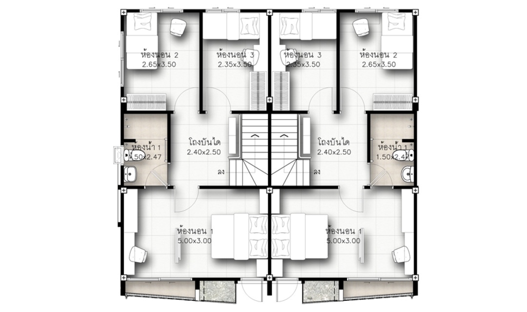 พื้นที่ใช้สอย 122 ตร.ม. ขนาด 3 ห้องนอน 2 ห้องน้ำ 2 จอดรถ