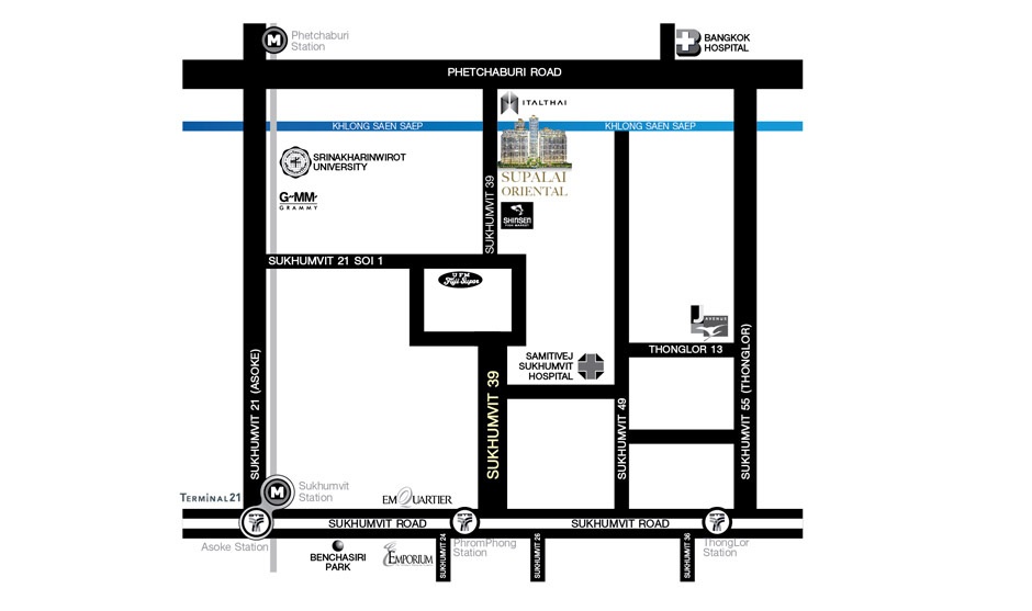 ถนน เพชรบุรีตัดใหม่รถไฟฟ้า MRT สถานีเพชรบุรีรถไฟฟ้า BTS สถานีพร้อมพงษ์