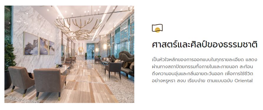 "โครงการ ศุภาลัย โอเรียนทัล สุขุมวิท 39 (SUPALAI Oriental Sukhumvit 39) โดดเด่นด้วยเอกลักษณ์การออกแบบสไตล์ตะวันออกที่ร่วมสมัย สร้างความสมดุลระหว่างความร่วมสมัยแบบเอเชียตะวันออกโดยกลมกลืนไปกับ ธรรมชาติและบรรยากาศโดยรอบของโครงการแหล่งรวมไลฟ์สไตล์คนเมืองและขึ้นชื่อว่าเป็นย่านชุมชนชาวญี่ปุ่นใจกลาง กรุงเทพมหานคร ส่วนผสมของความทันสมัย 70% เพื่อตอบรับกับผู้พักอาศัยซึ่งเป็นคนเมืองผสมผสานกับกลิ่นอายแบบญี่ปุ่น 30 % แสดงผ่านทางสถาปัตยกรรม"