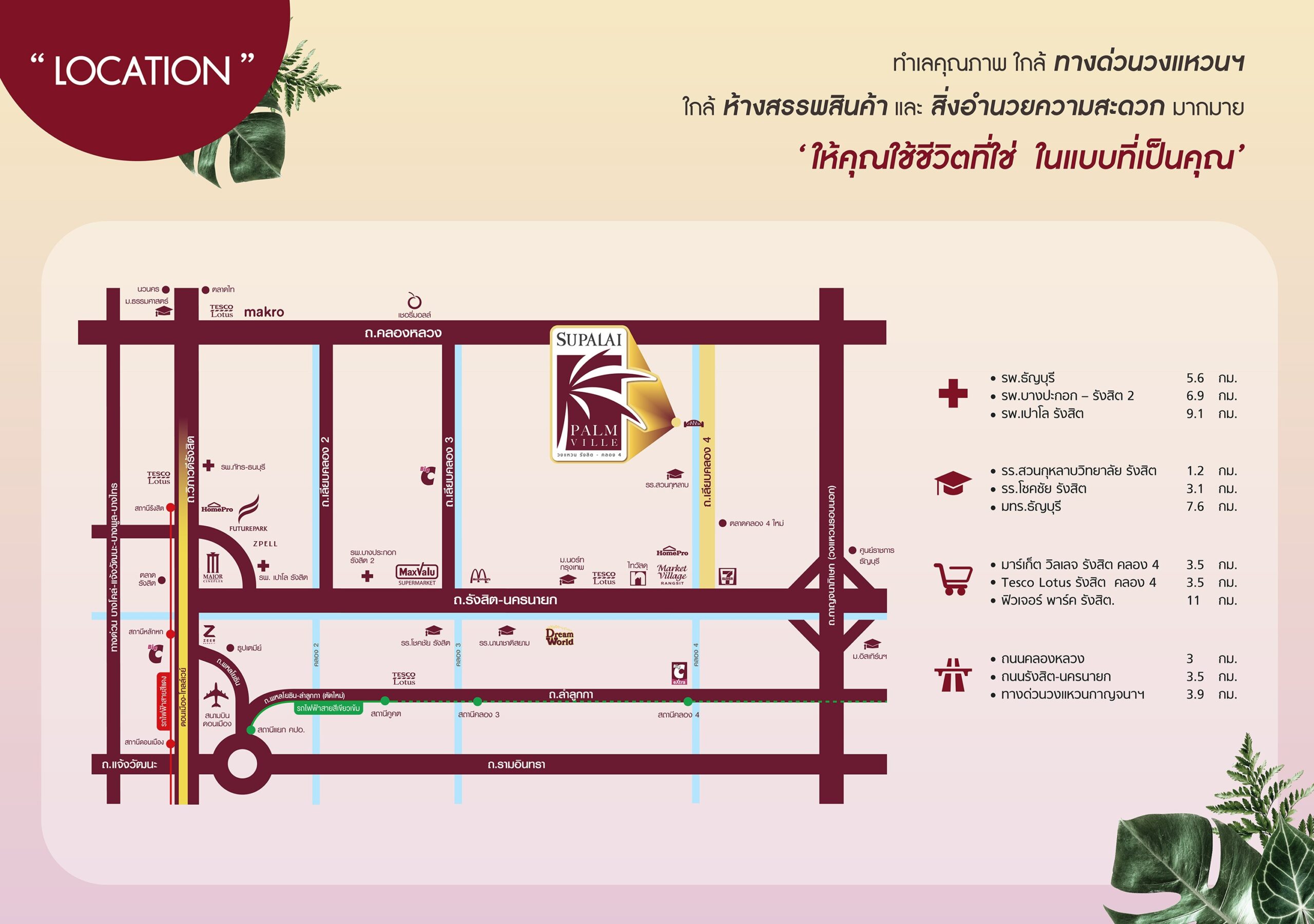 การเดินทาง ถนนคู้บอนวงแหวนกาญจนาภิเษก ถนนรามอินทราถนนสุขาภิบาล 5ถนนหทัยราษฎร์ ทางด่วนฉลองรัช (ด่านจตุโชติ) รถไฟฟ้าสายสีชมพู (สถานีคู้บอน) รถไฟฟ้าสายสีเขียว (สถาน