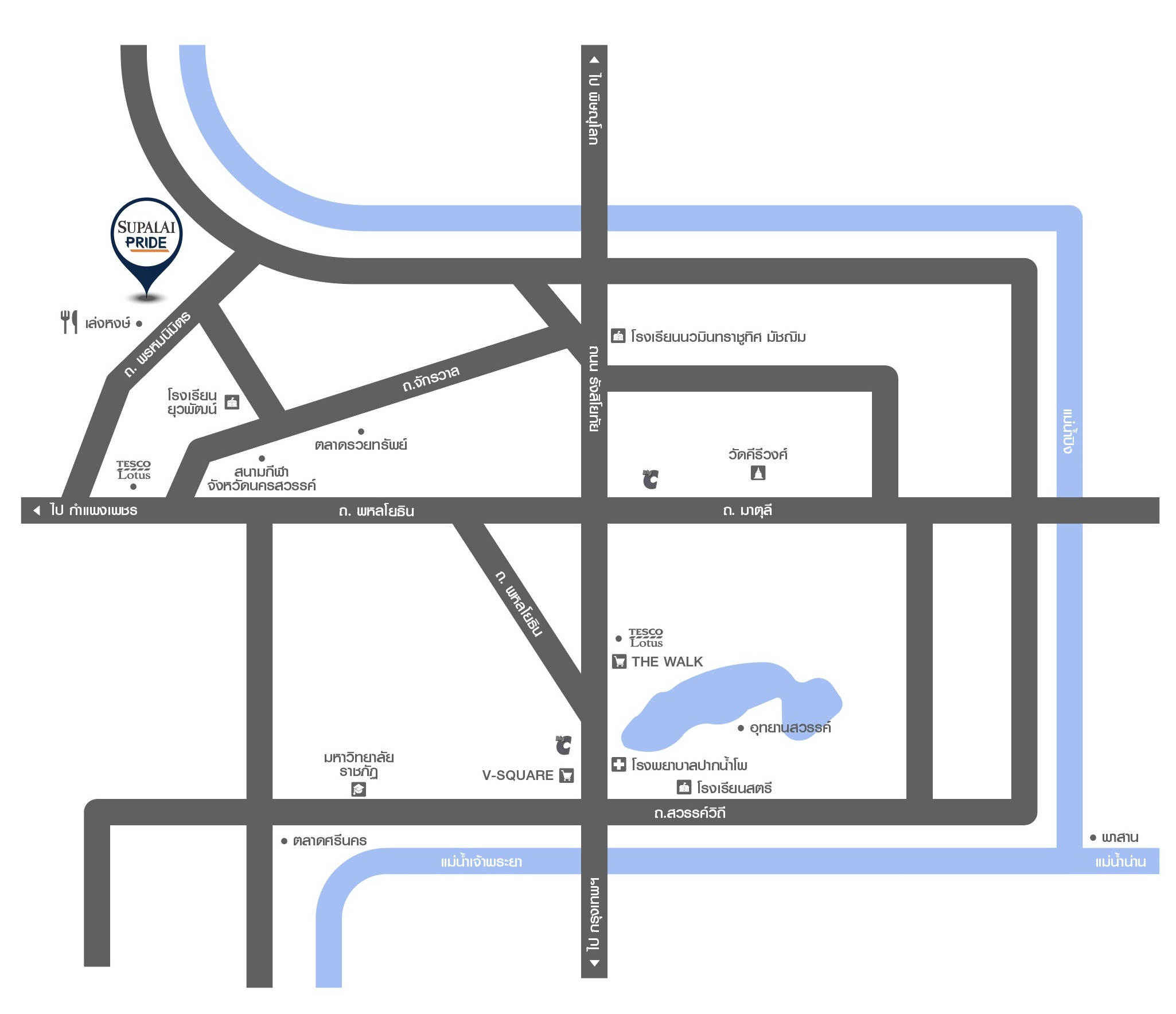 สถานศึกษาโรงเรียนบีคอนเฮาส์ แย้มสะอาด – 2 กม.โรงเรียนโชคชัย รังสิต – 7 กม.โรงเรียนสวนกุหลาบ รังสิต – 9 กม.มหาวิทยาลัยเวสเทิร์น – 12 กม.มหาวิทยาลัยเทคโ