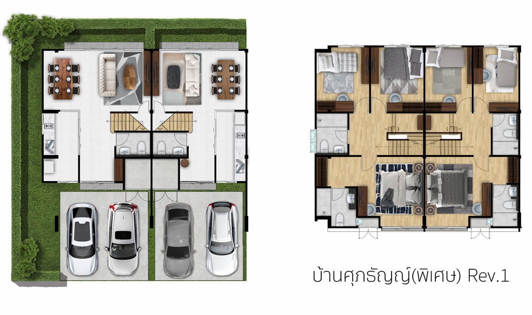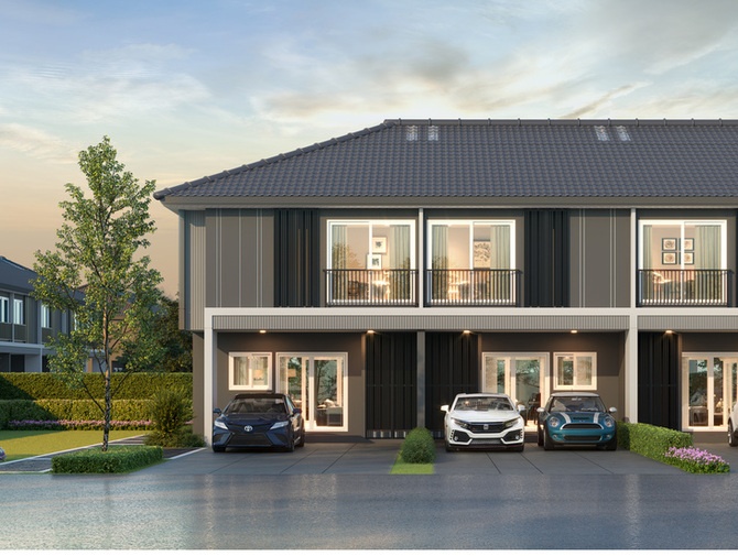ทำเลที่ตั้ง ถ.สำเร็จพัฒนา อ.บางกรวย จ.นนทบุรี 11130 สิ่งอำนวยความสะดวกรอบโครงการ แบบบ้าน : Camelia พื้นที่ใช้สอย 206 ตร.ม. 4 ห้องนอน 3 ห้องน้ำ 2 ห้องรับแขก ส่วนรับประทานอาหาร ห้องครัว ที่จอดรถ 3 คัน