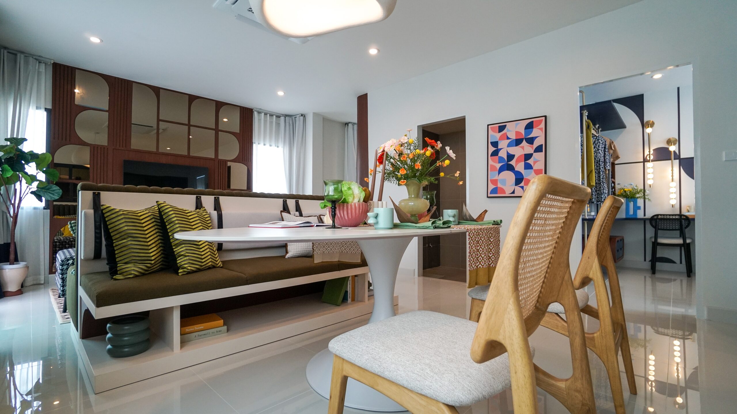 ทำเลที่ตั้ง ถ.บรมไตรโลกนารถ ต.ท่าโพธิ์ อ.เมืองพิษณุโลก จ.พิษณุโลก 65000 แบบบ้าน : ศุภมัณฑิรา แบบบ้าน : ศุภราช พื้นที่ภายในบ้าน มีลักษณะเปิดโล่งต่อเนื่องถึงกันโดยไม่มีผนังกั้น ( OPEN PLAN ) ทำให้การรับและระบายลม ( VENTILATION ) เป็นไปอย่างทั่วถึง ภายในบ้านจึงเย