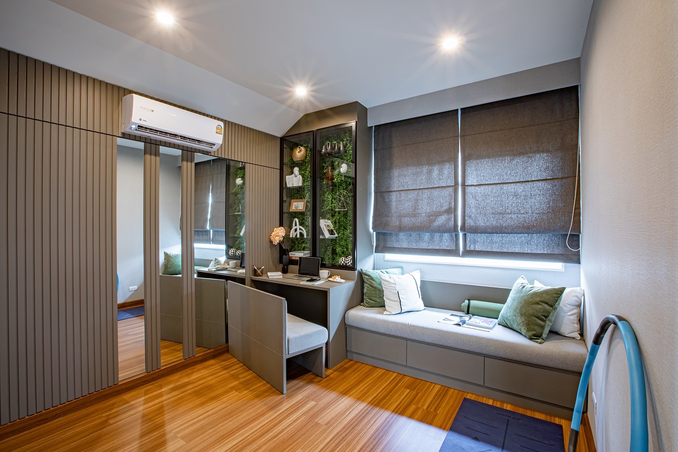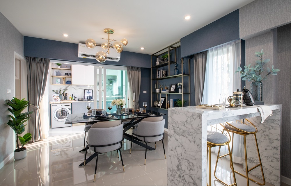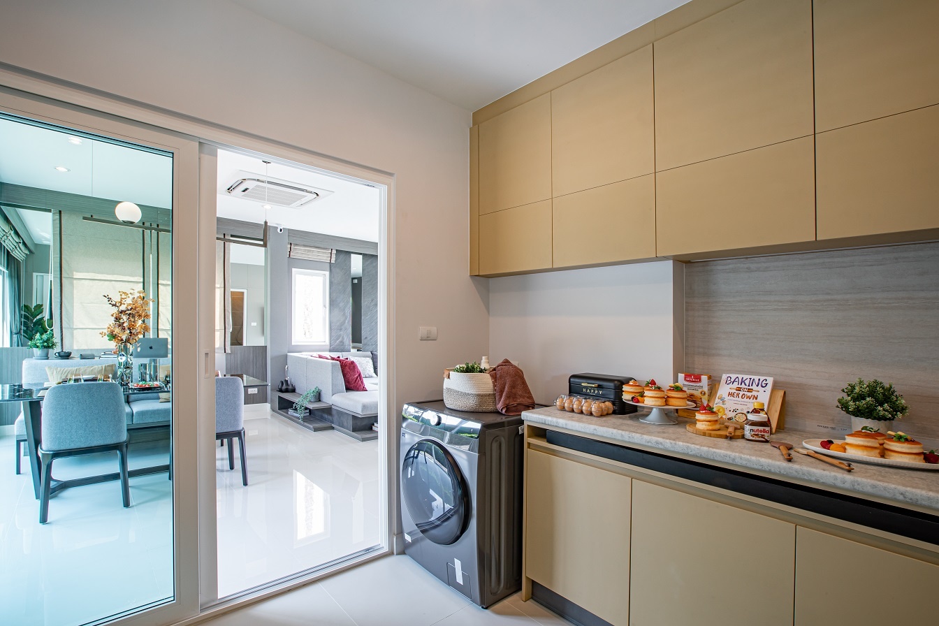 ถัดออกมาจากตัวห้องครัวจะเป็นห้องซักรีด สำหรับซัก ตาก และรีดได้ในพื้นที่ที่ถูกออกแบบมาอย่างลงตัว ฟังก์ชั่นเหมาะสมกับการใช้งาน พื้นที่สวนที่เพิ่มเติมเข้ามาสำหรับบ้านเดี่ยวไทป์นิวคาสเซิล ยังให้พื้นที่สำหรับวางม้านั่ง หรือโต๊ะและชุดเก้าอี้สำหรับสวน เหมาะกับการพักผ่อนหย่อนใจของทุ