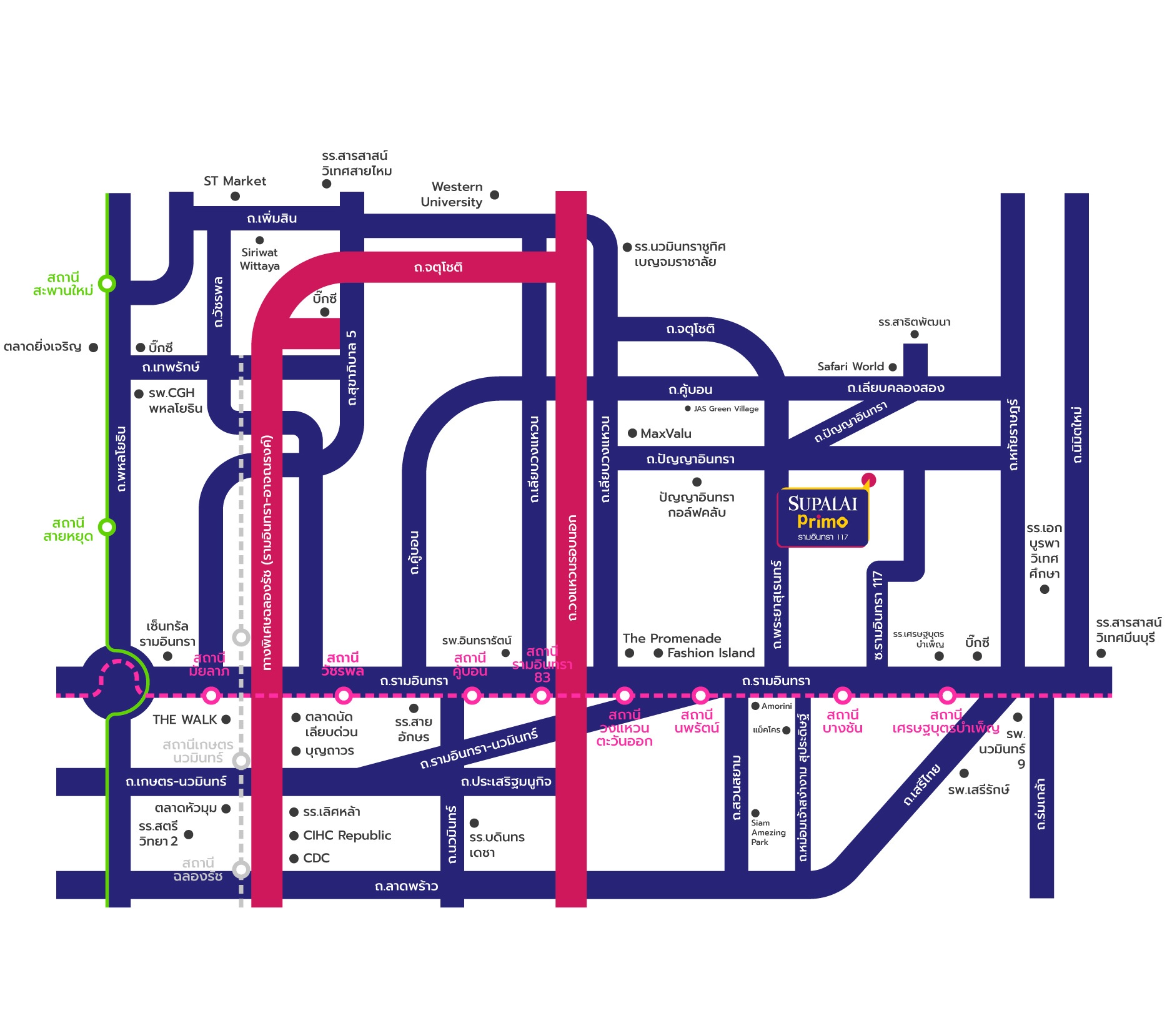 การเดินทาง ถนนบ้านกล้วย-ไทรน้อยถนนบางกรวย-ไทรน้อยถนนกาญจนาภิเษกMRT สถานีคลองบางไผ่ ทำเลที่ตั้ง ถ.บ้านกล้วย-ไทรน้อย ต.พิมลราช อ.บางบัวทอง จ.นนทบุรี 11110