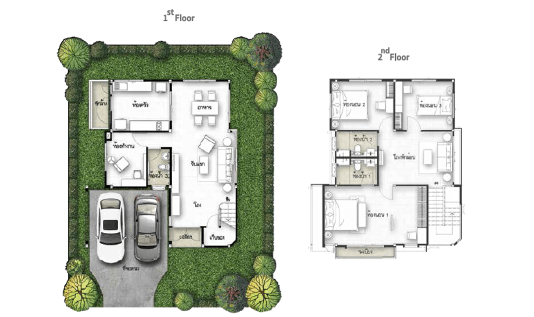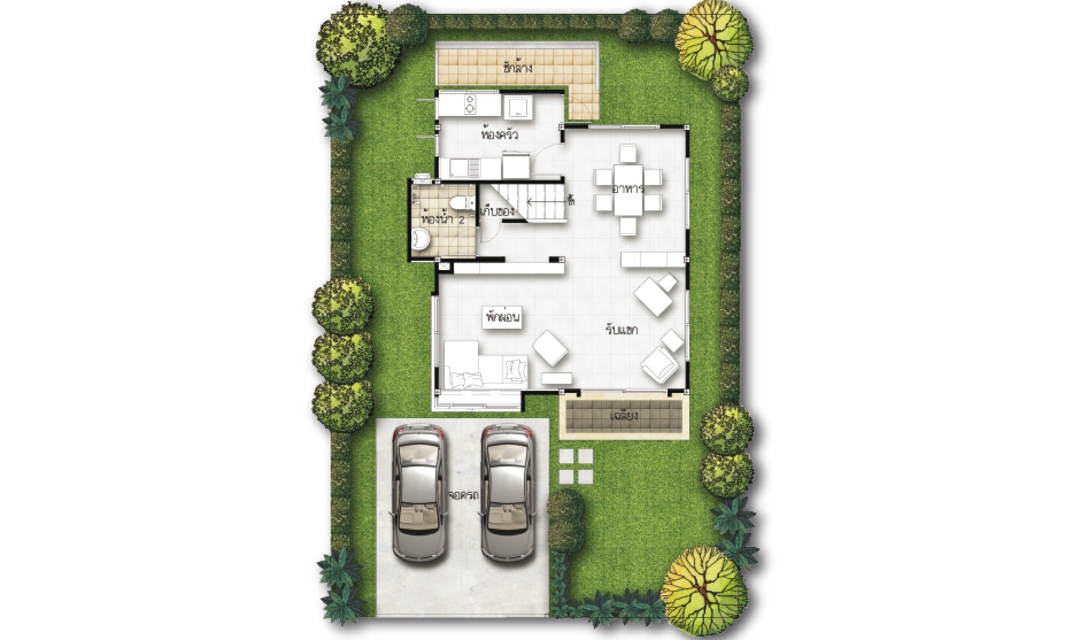 พื้นที่ใช้สอย 150 ตร.ม. ขนาด 3 ห้องนอน 3 ห้องน้ำ พร้อมที่จอดรถ 2 คัน