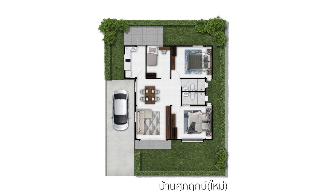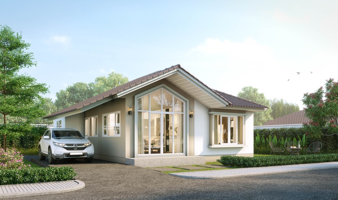 บ้านเดี่ยวชั้นเดียว 3 ห้องนอน 2 ห้องน้ำ 1 ห้องครัว