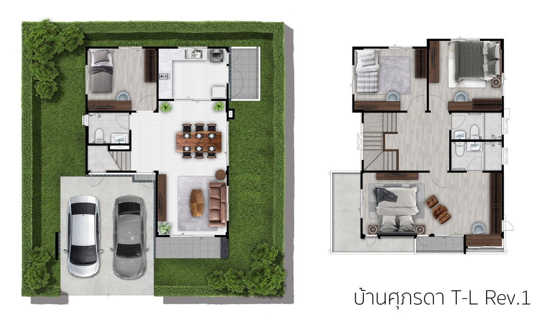 แบบบ้าน : Duchess 2 ห้องนอน 3 ห้องน้ำ 1 ที่จอดรถรายละเอียดอื่นๆ• ตกแต่งห้องน้ำ พร้อมสุขภัณฑ์• ตกแต่งสวนภายนอกบ้าน• ตกแต่งพื้นภายใน• แทงค์น้ำ/ปั๊มน้ำ• ระบบกำจัดปลวก- Max