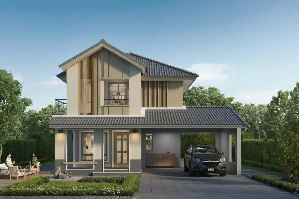 แบบบ้าน : Crisp บ้านแนวคิดใหม่ พื้นที่ใช้สอย 141 ตร.ม.4 ห้องนอน 2 ห้องน้ำ 1 ห้องรับแขก 1 ห้องรับประทานอาหาร ครัวแยกสัดส่วน และที่จอดรถ 1 คัน แบบบ้าน :Crisp Ex