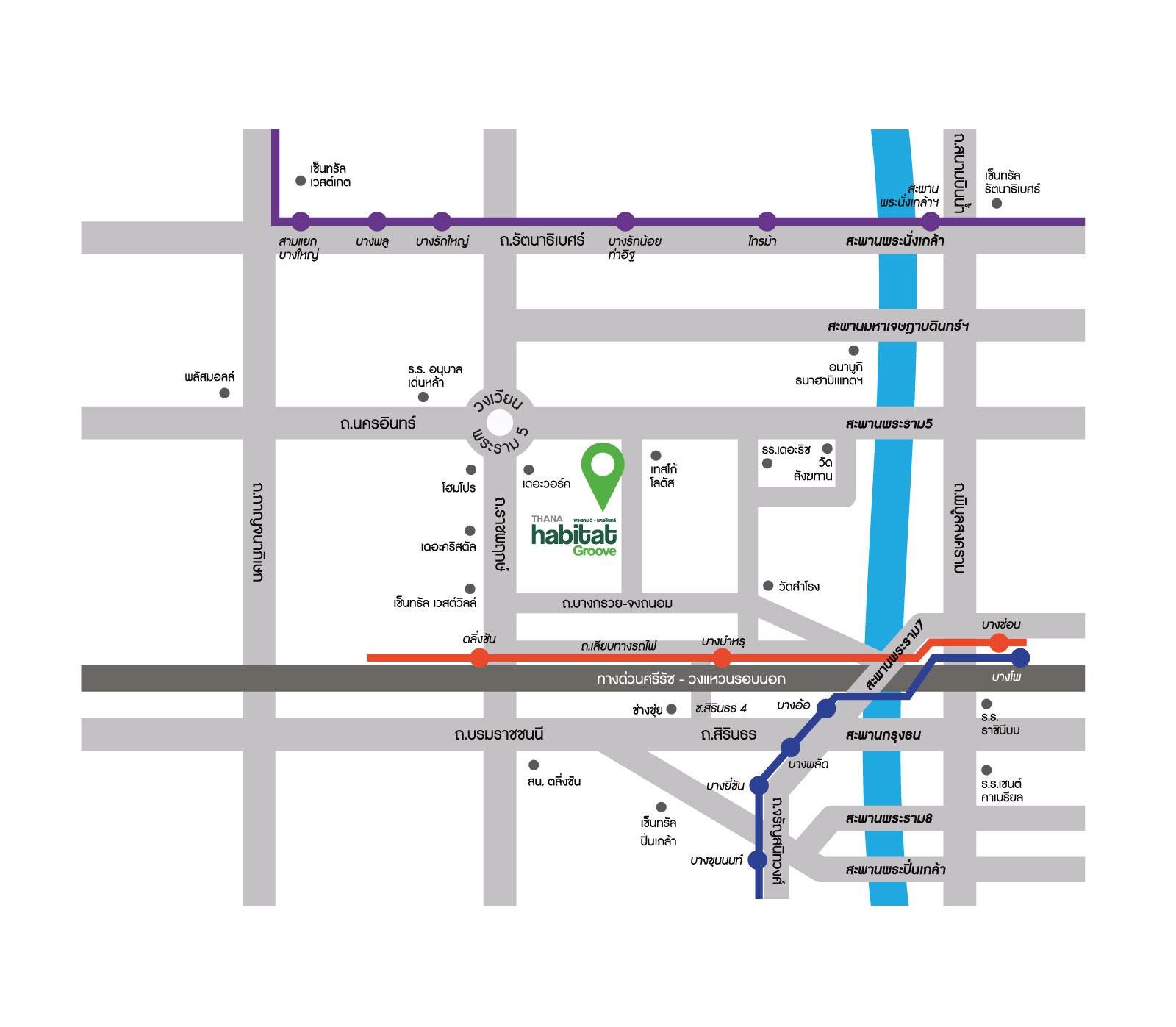 การเดินทาง วงแหวนรอบนอกกรุงเทพมหานครฝั่งตะวันตก 9 กม.ทางพิเศษเฉลิมมหานคร ด่านสุขสวัสดิ์ 6 กม.สะพานวงแหวนอุตสาหกรรม 6 กม. สถานศึกษาโรงเรียนวรรณสว่างจิต 8 กม.โรงเรียนรุ่งอรุณ 3 กม.มหาวิทยาลัยเทคโนโลยีพระจอมเกล้าธนบุรี 3 กม.