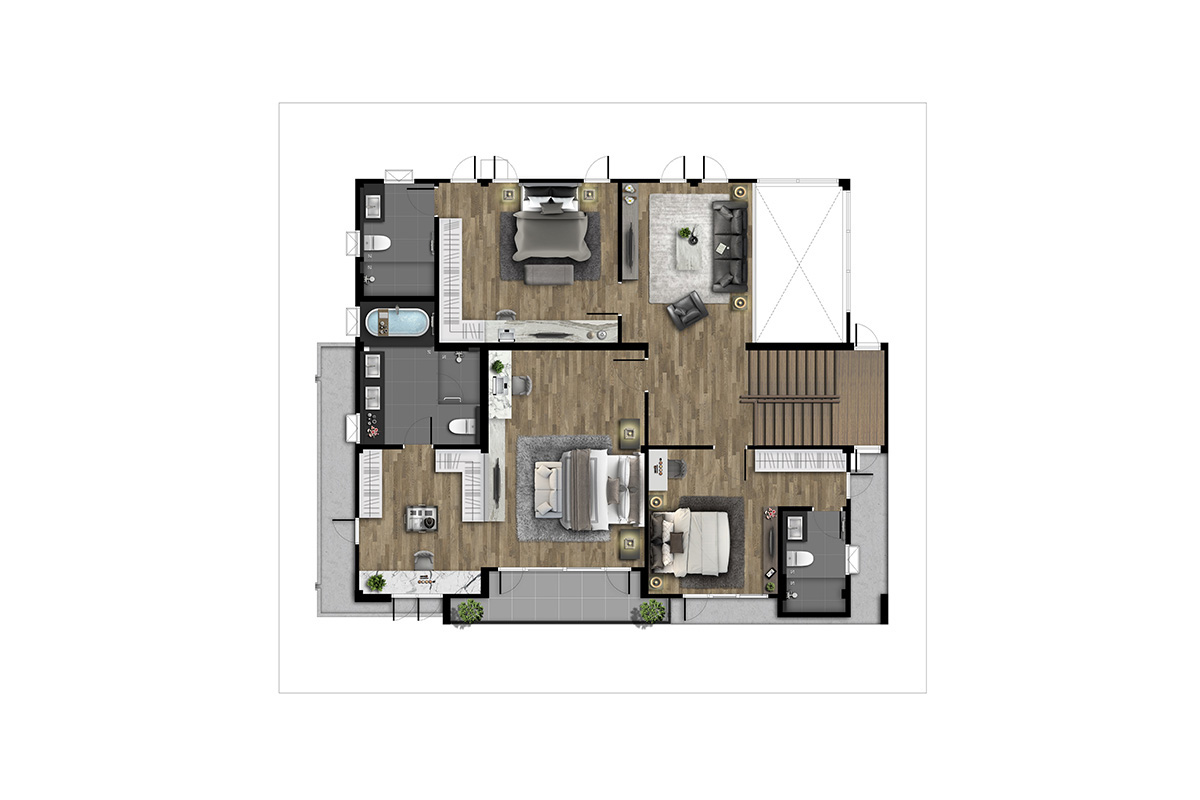 นิวคาสเซิล (Newcastle) แบบบ้าน นิวคาสเซิล (Newcastle) พื้นที่ใช้สอย 155 ตร.ม. 4 ห้องนอน, 3 ห้องน้ำ, 2 ที่จอดรถ 1 ห้องรับแขก, 1 ห้องอเนกประสงค์, 1 ห้องอาหาร, 1 ห้องครัว