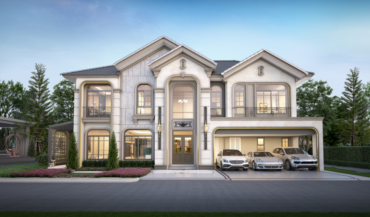พื้นที่ใช้สอย 322 ตร.ม. 5 ห้องนอน 5 ห้องน้ำ 1 ห้องรับแขก 1 ห้องรับประทานอาหาร 1 ห้องครัว 1 ห้องพักผ่อน 1 ห้องทำงาน 1 ห้องพระ 1 ห้องแม่บ้าน 1 ห้องเก็บของ 3 ที่จอดรถ