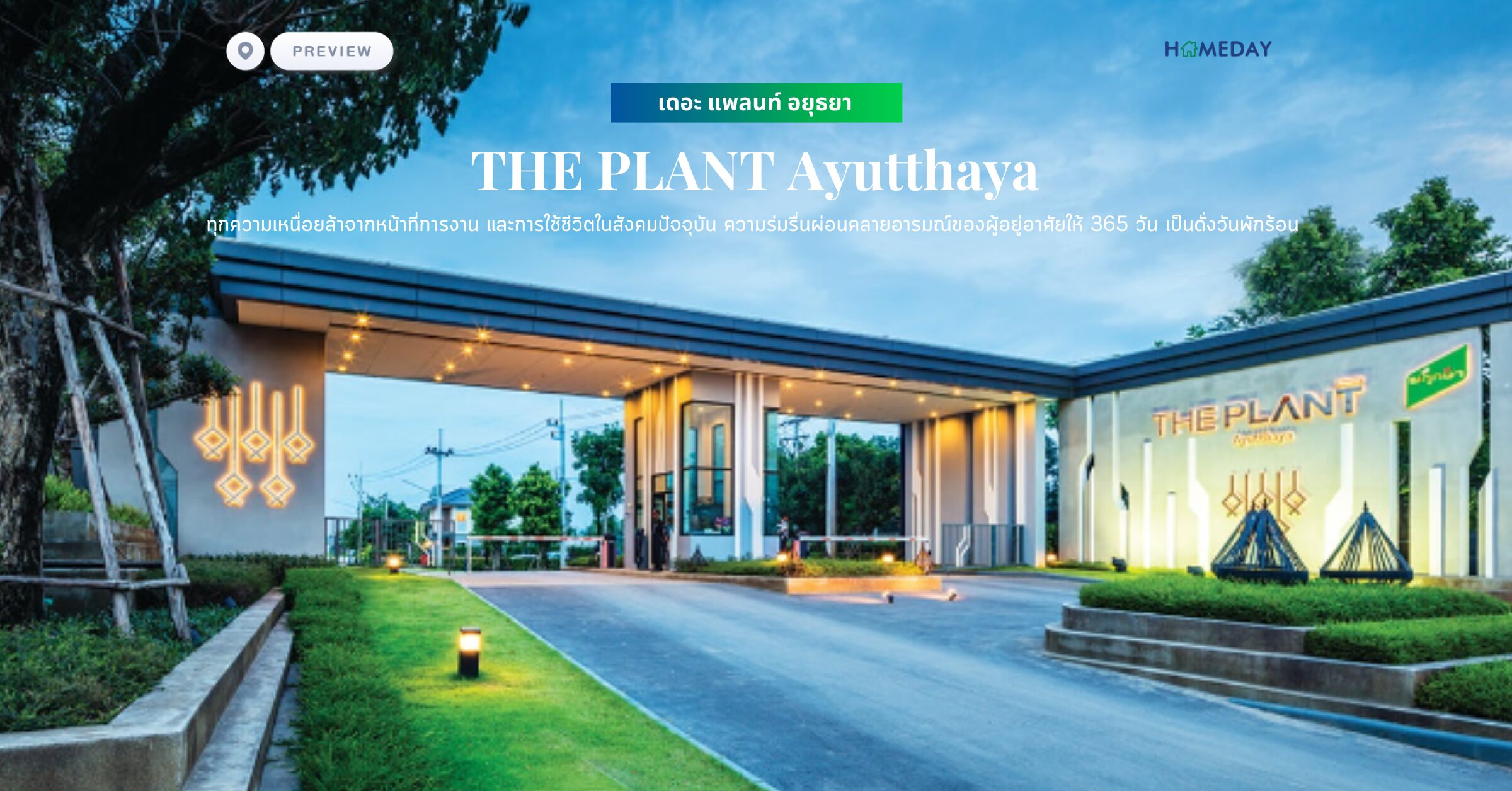 "โครงการ เดอะ แพลนท์ อยุธยา (THE PLANT Ayutthaya) ทุกความเหนื่อยล้าจากหน้าที่การงาน และการใช้ชีวิตในสังคมปัจจุบัน จะถูกบรรเทาลงทันทีที่เลี้ยวเข้าสู่โครงการ ให้ดอกไม้ ใบไม้ สายลม และความร่มรื่นผ่อนคลายอารมณ์ของผู้อยู่อาศัย ออกแบบแนวสวนสวยตลอดความยาวของถนนเมน” ให้ 365 วัน เป็นดั่งวันพักร้อน ” แม้ไม่ได้เดินทางไปไหน"