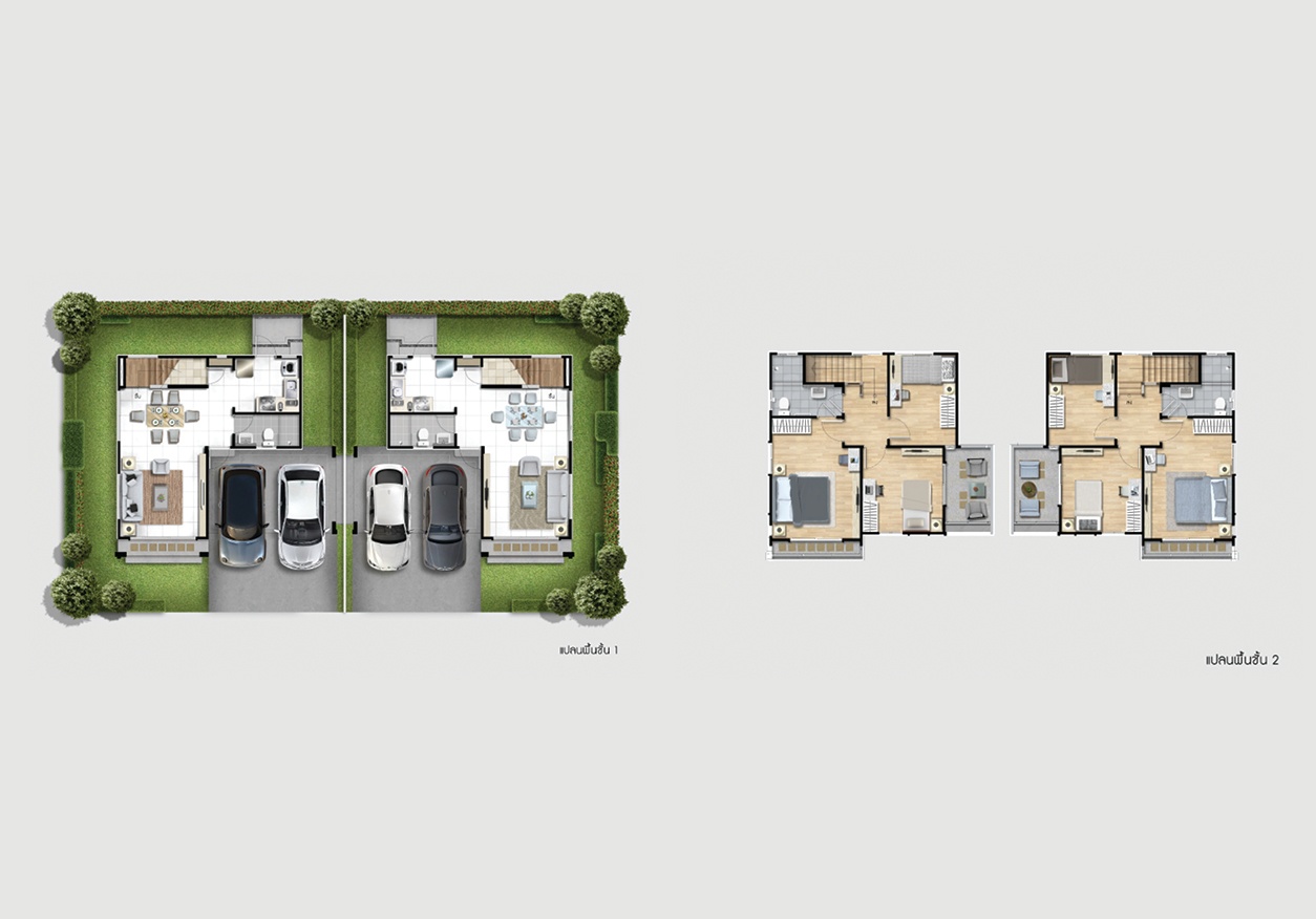 บ้านแฝดในสไตล์บ้านเดี่ยว พื้นที่อิสระ ฟังก์ชันครบครัน พื้นที่ใช้สอย 121 ตร.ม. สำหรับครอบครัวเริ่มต้น