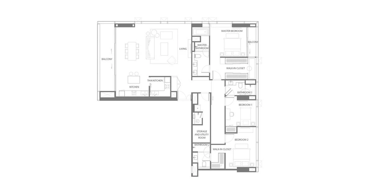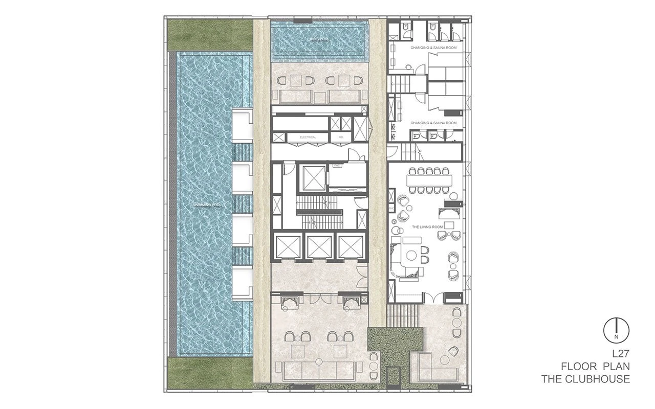 เลานจ์ส่วนกลาง, สระว่ายน้ำ, สระว่ายน้ำเด็ก, ห้องฟิตเนส, ห้องเด็กเล่นและห้องเรียน, Sky Garden Lounge, พื้นที่สีเขียว, ระบบรักษาความปลอดภัยตลอด 24 ชั่วโมง