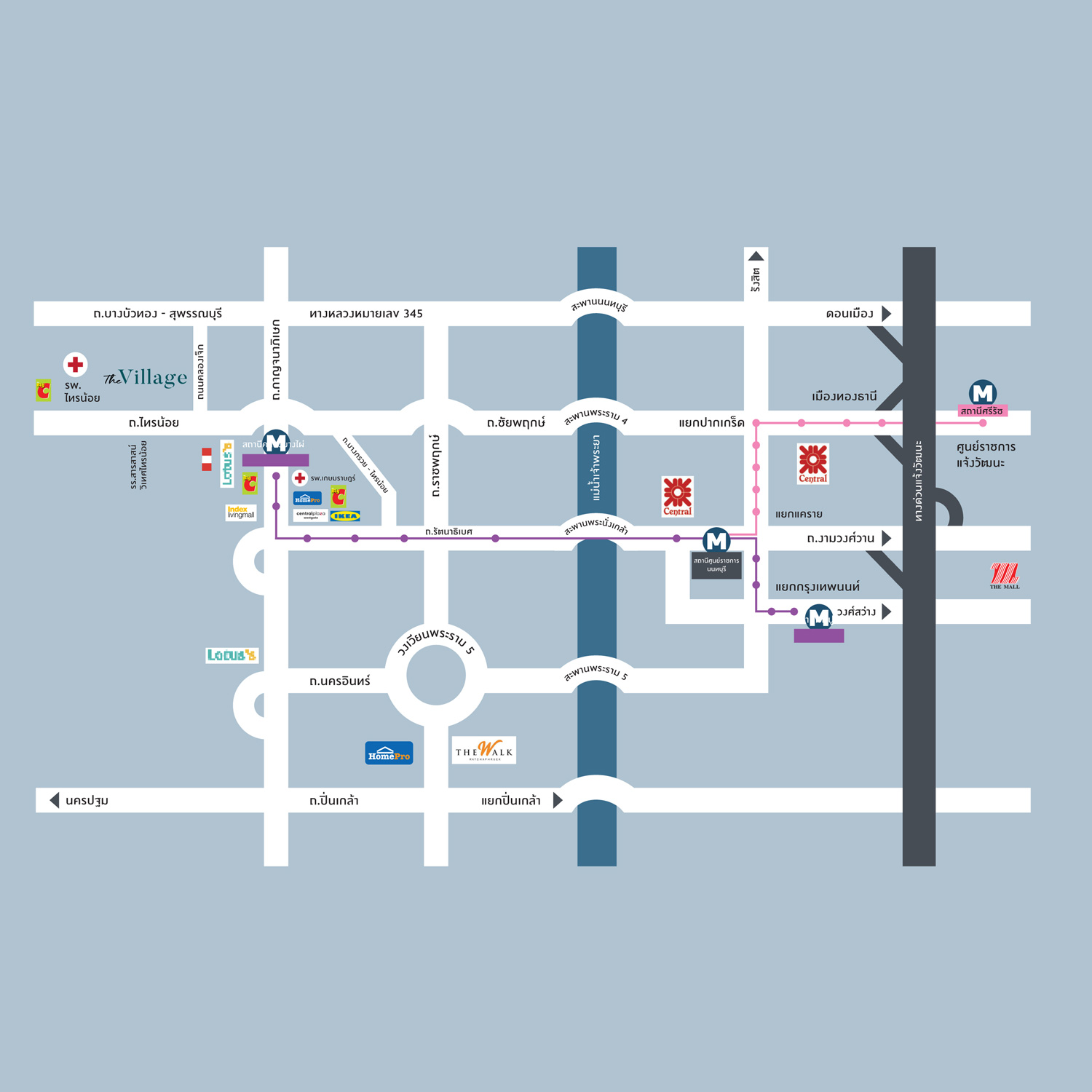 ทำเลที่ตั้ง ซอยร่มเกล้า 6 แขวงมีนบุรี เขตมีนบุรี กทม. 10510 สิ่งอำนวยความสะดวกรอบโครงการ การเดินทาง สถานีอินเตอร์เชนจ์ (รถไฟฟ้าสายสีส้มและสายสีชมพู)ARL ลาดกระบังสนามบินสุวรรณภูมิ