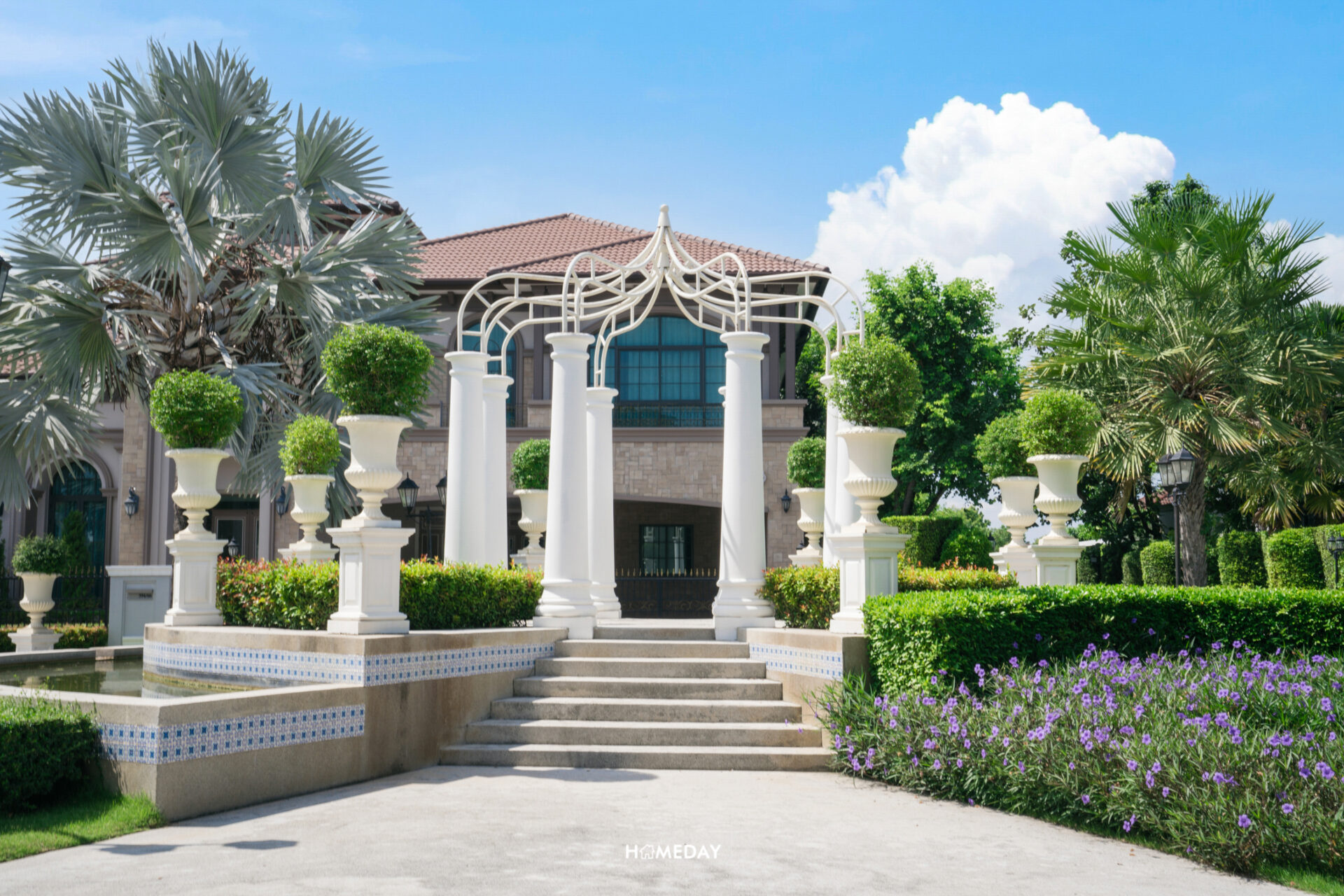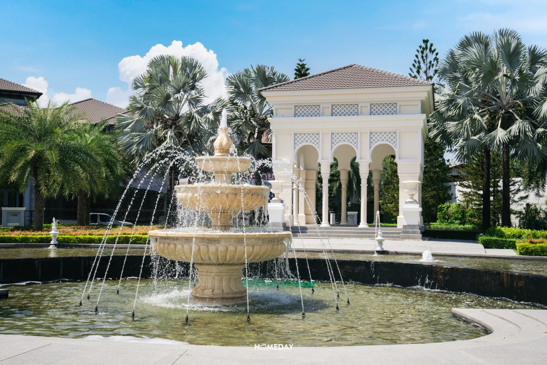 สำหรับพื้นที่สวนของทางโครงการ ต้องบอกว่ายิ่งใหญ่มาก ๆ ครับ โดยจะแบ่งเป็นสวนขนาดใหญ่ทั้งหมด 3 สวน รวมแล้วกว่า 5 ไร่ แต่ละสวนก็จะมีการตกแต่งที่แตกต่างกันไป แต่ยังคงคอนเซ็ปต์และดีไซน์สไตล์สแปนิชเหมือน ๆ กัน มีทั้งต้นไม้ใหญ่, ไม้ประดับ, น้ำพุ, รูปปั้น, Pavilion บรรยากาศเหมือนได้ท่องเที่ยวพักผ่อนอยู่ในต่างประเทศเลยล่ะครับ สามารถแวะมาพักผ่อน สูดอากาศ ออกกำลังกายยามเช้า เดินเล่นยามเย็นได้ทุกวันเลย