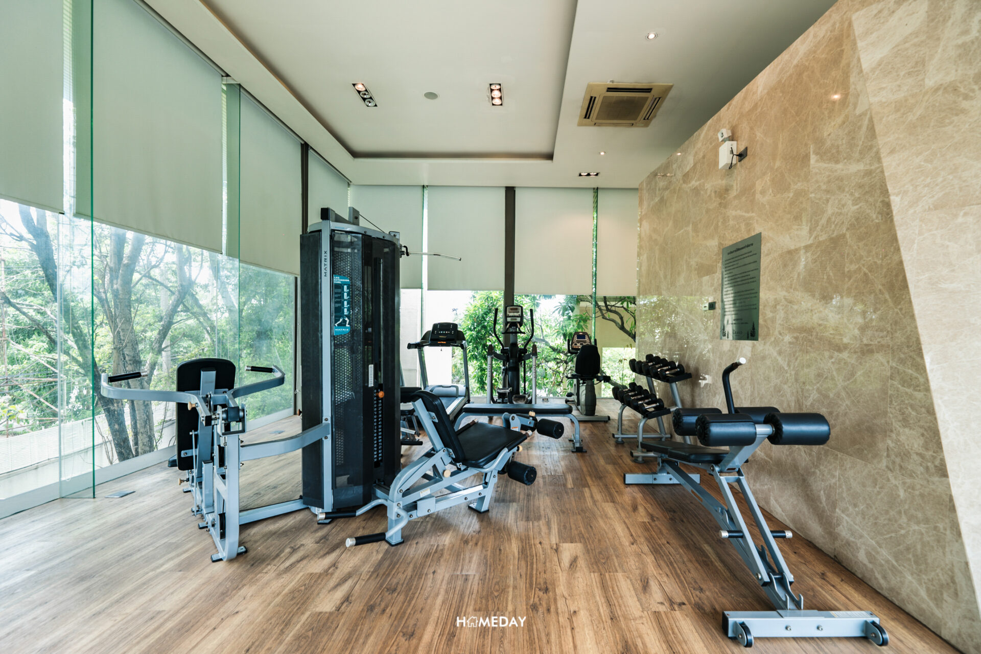 ห้องฟิตเนส อุปกรณ์และเครื่องออกกำลังกายครบครัน ทั้งลู่วิ่ง, เครื่องเดินวงรี, จักรยานเอนปั่น, เครื่องออกกำลังกายบริหารเฉพาะส่วน, ดัมเบล ฯลฯ ซึ่งสามารถเทควิวสวย ๆ ด้านนอกไปพร้อม ๆ กันได้ด้วยครับ