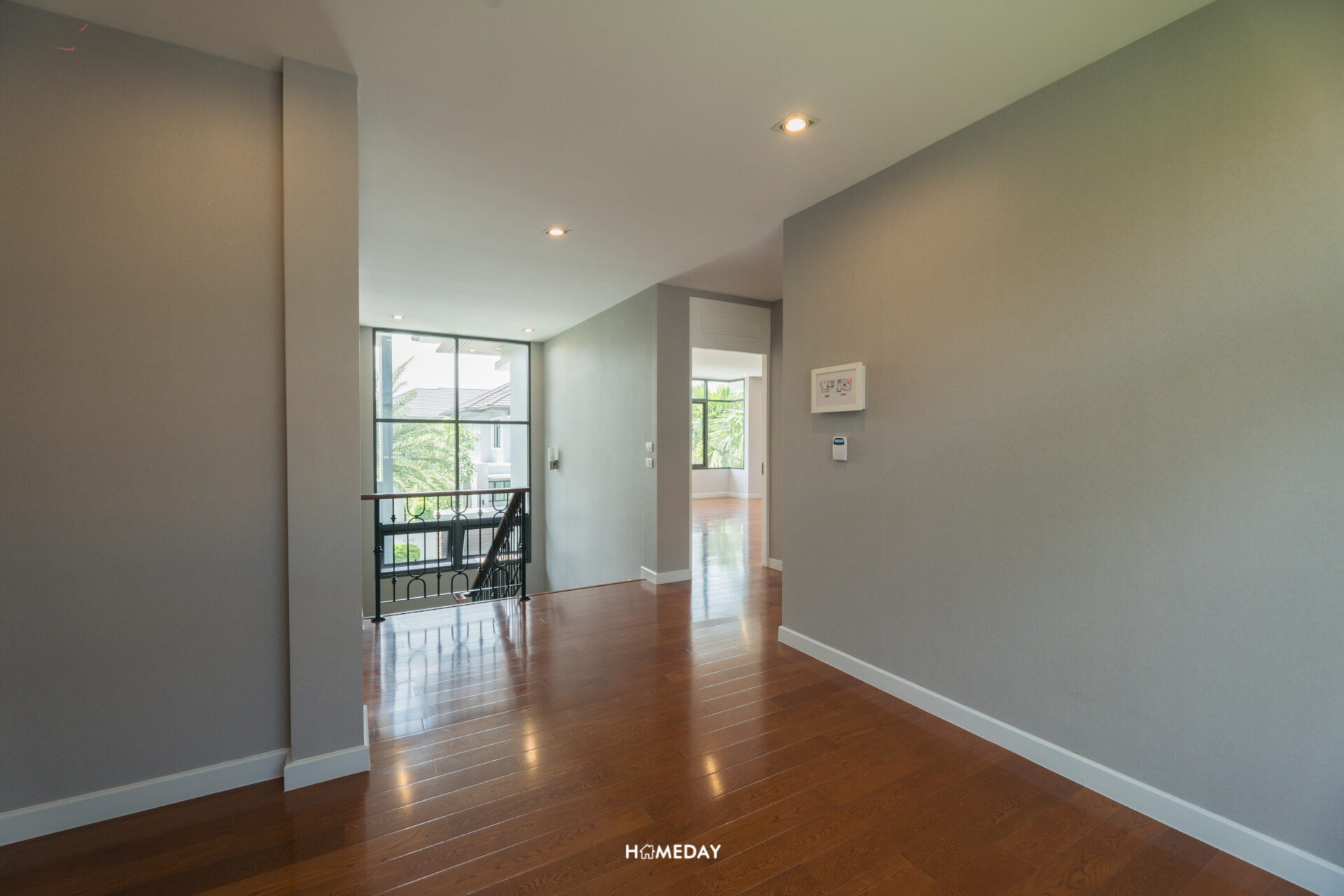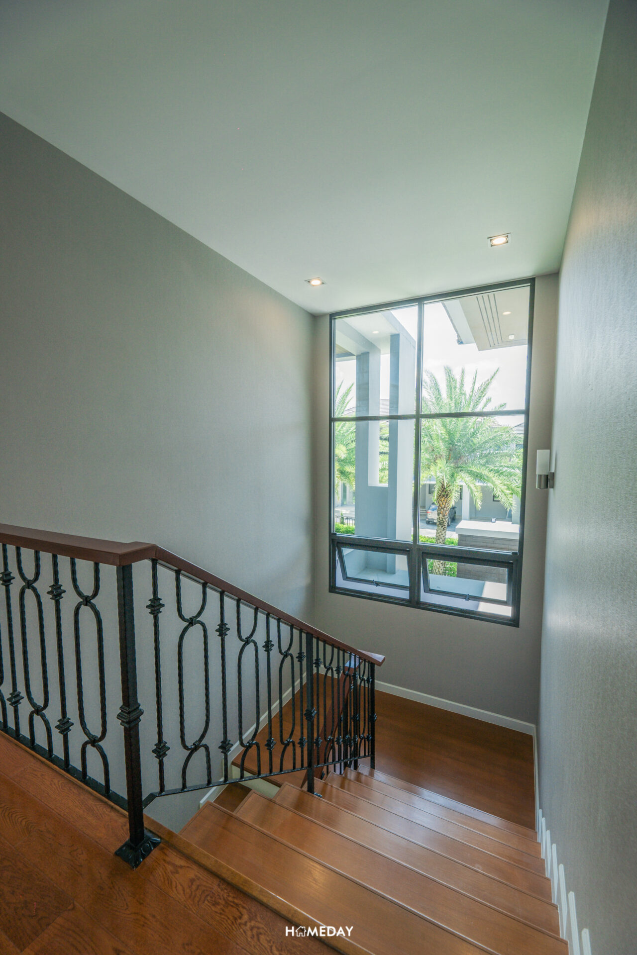 ขึ้นมาดูที่ชั้น 2 กันต่อเลยครับ ตัวโถงบันไดตรงนี้ ได้บานหน้าต่างขนาดใหญ่ ที่สามารถเปิดออกเพื่อระบายอากาศให้หมุนเวียนภายในบ้านได้ครับ นอกจากนี้ยังช่วยรับแสงแดดให้ส่องสว่างเข้ามายังตัวบันไดและพื้นที่บริเวณชั้น 2 ได้เป็นอย่างดีอีกด้วย
