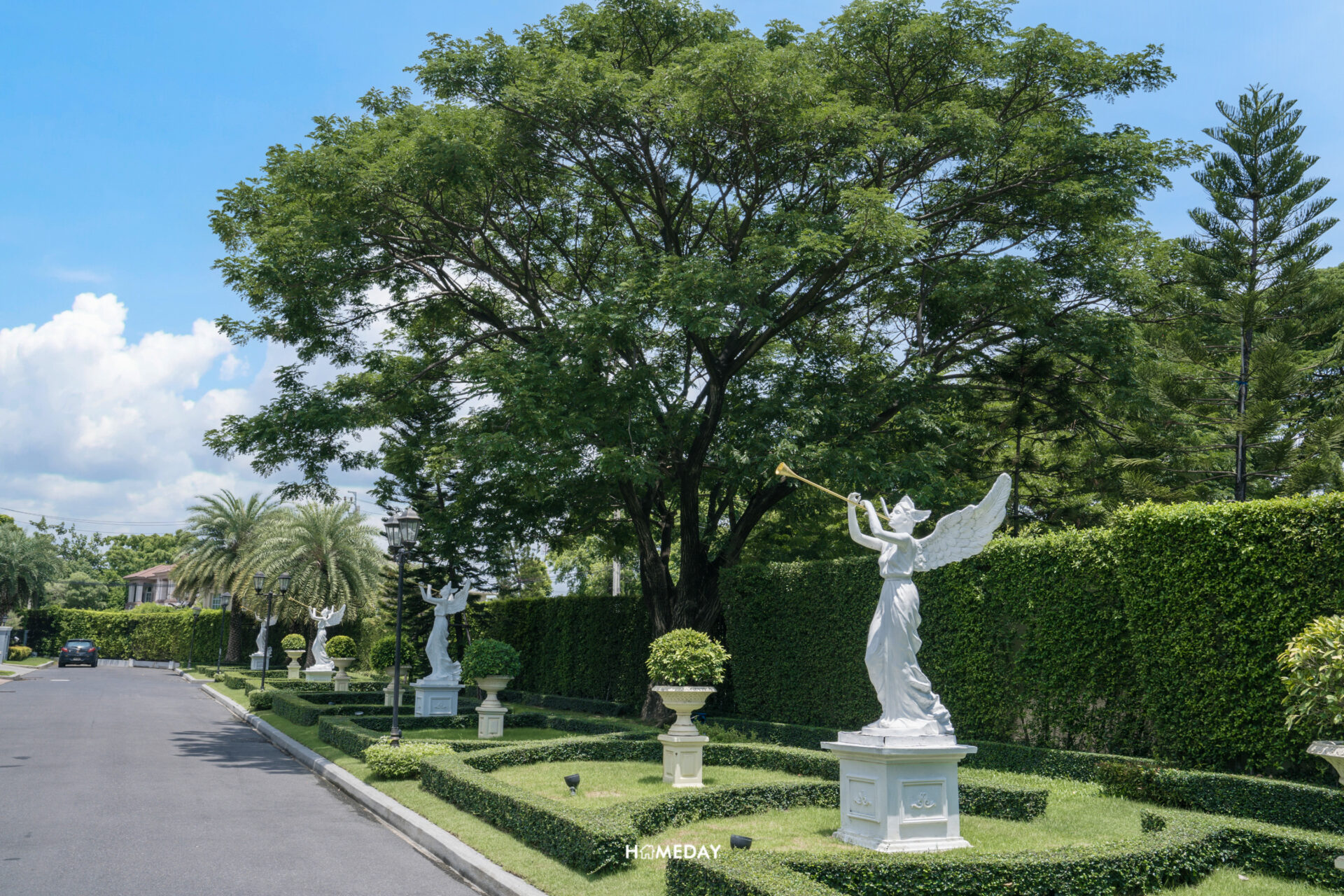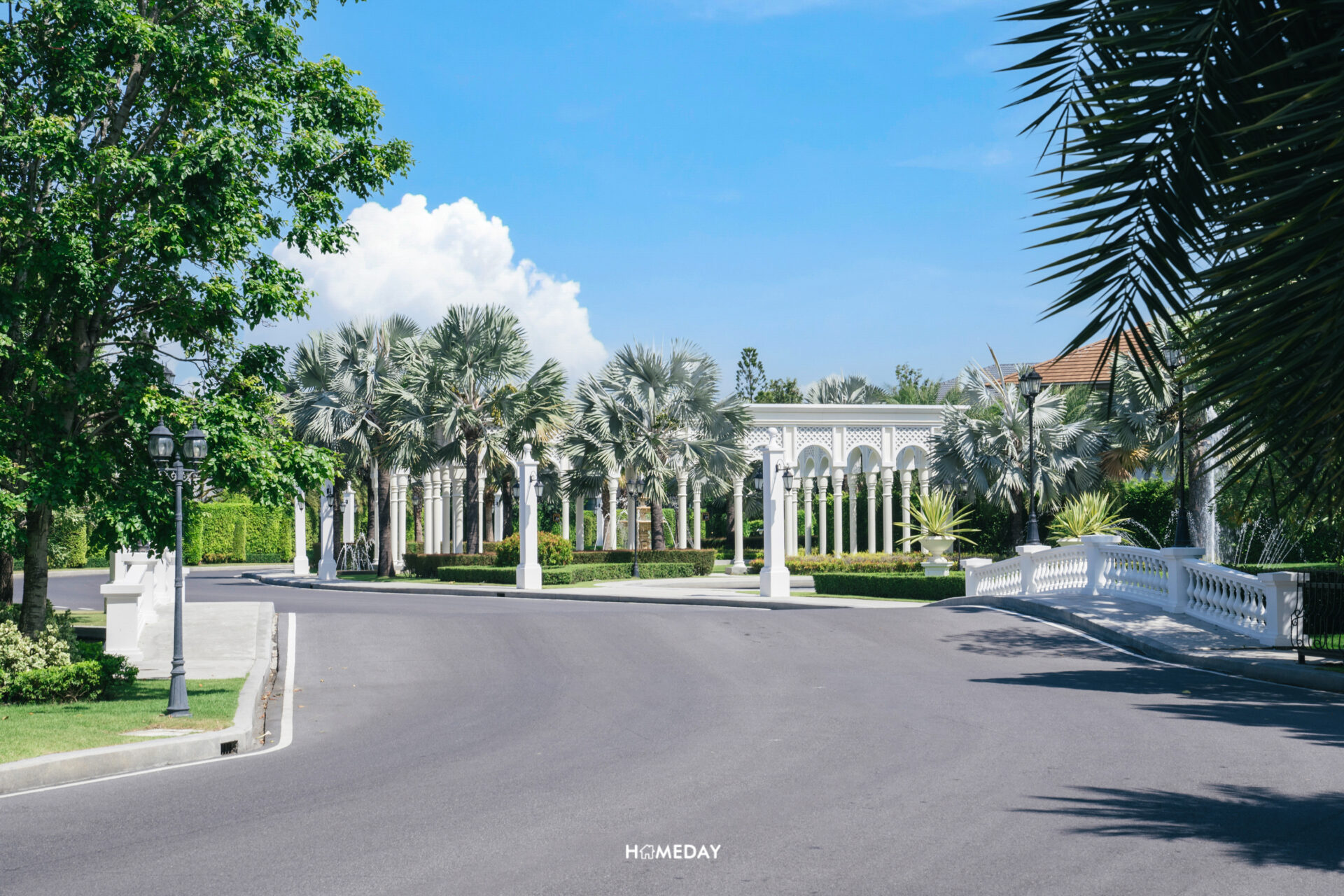 เมื่อผ่านรั้วโซน Alpina เข้ามาแล้ว จะพบกับถนนเมนขนาดใหญ่ ที่สวยงามสบายตา ไม่มีสายไฟบดบังวิวเลยครับ สองข้างทางประดับตกแต่งต้อนรับด้วยไม้พุ่ม, ไม้ประดับ และรูปปั้น บ่งบอกถึงความพิเศษของตัวโครงการได้เป็นอย่างดี