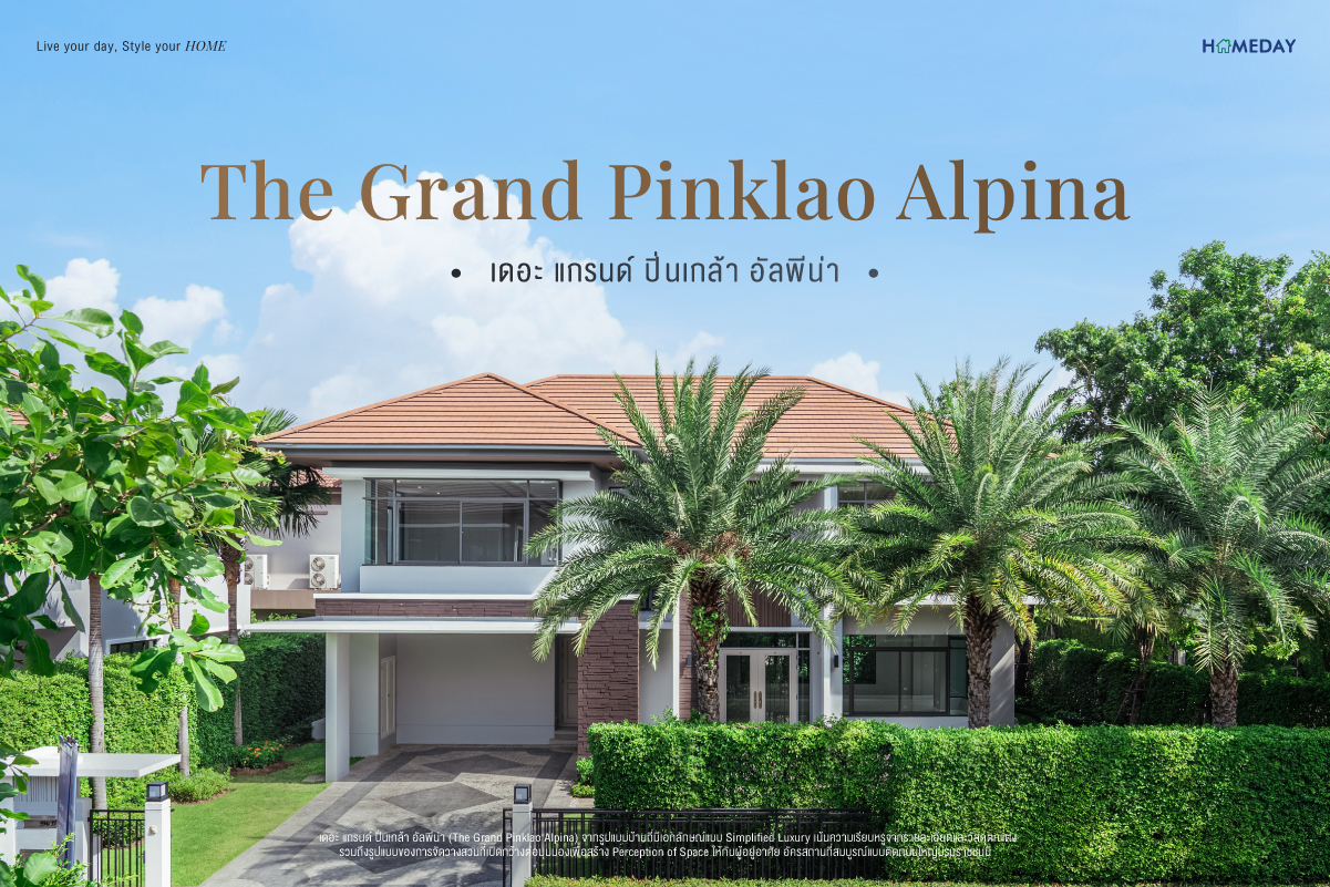"เดอะ แกรนด์ ปิ่นเกล้า อัลพีน่า (The Grand Pinklao Alpina) จากรูปแบบบ้านที่มีเอกลักษณ์แบบ Simplified Luxury เน้นความเรียบหรูจากรายละเอียดและวัสดุตกแต่ง รวมถึงรูปแบบของการจัดวางสวนที่เปิดกว้างต่อมุมมองเพื่อสร้าง Perception of Space ให้กับผู้อยู่อาศัย อัครสถานที่สมบูรณ์แบบติดถนนใหญ่บรมราชชนนี"