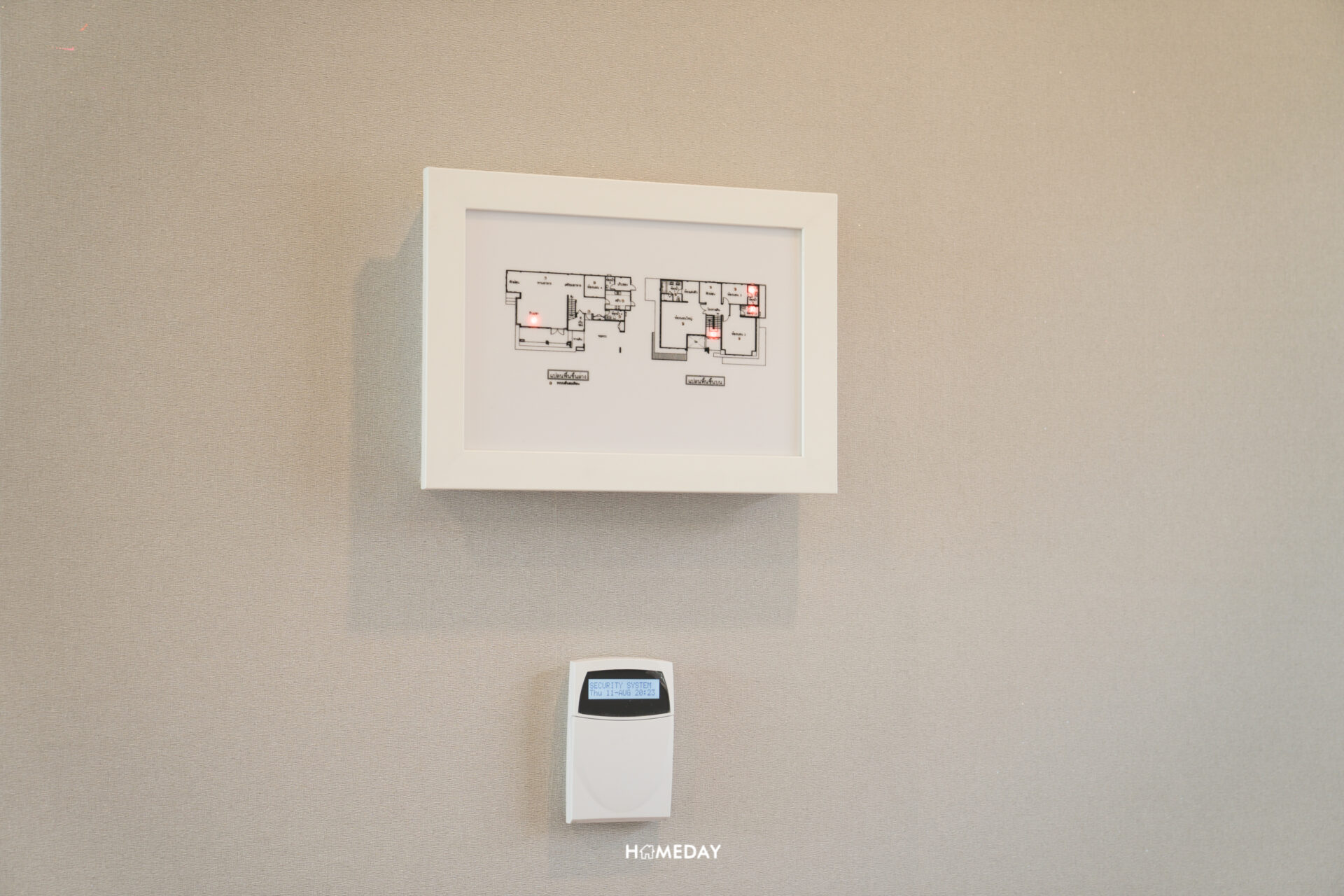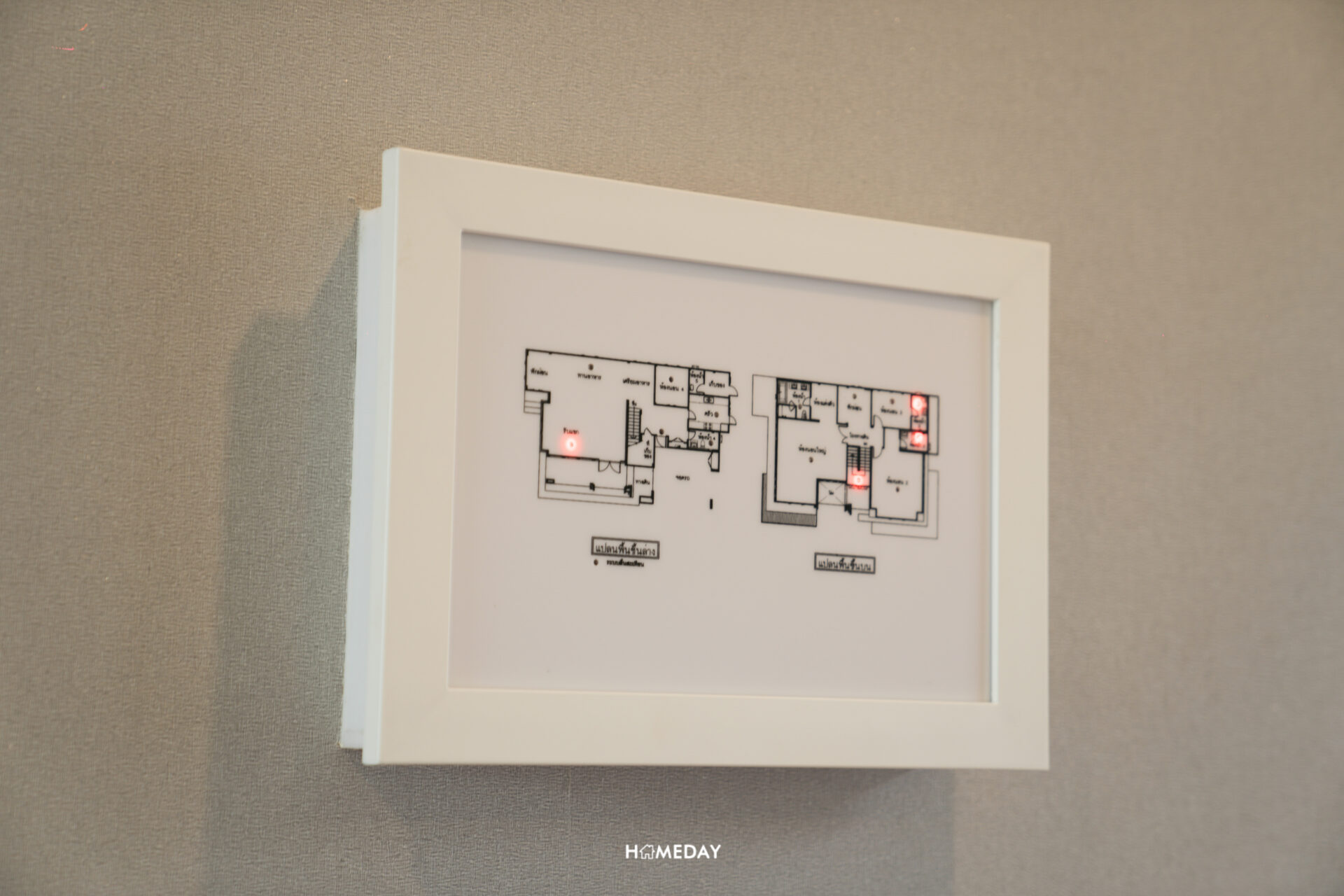 ภาพจากอีกมุมครับ หันออกมาก็จะเจอกับบันไดแบบนี้เลย ด้านข้างมีแผงควบคุมระบบไฟฟ้าของพื้นที่แต่ละส่วนภายในบ้าน ทั้งชั้นล่างและชั้นบนมาให้ สามารถกดสั่งการได้จากตรงนี้เลยครับ