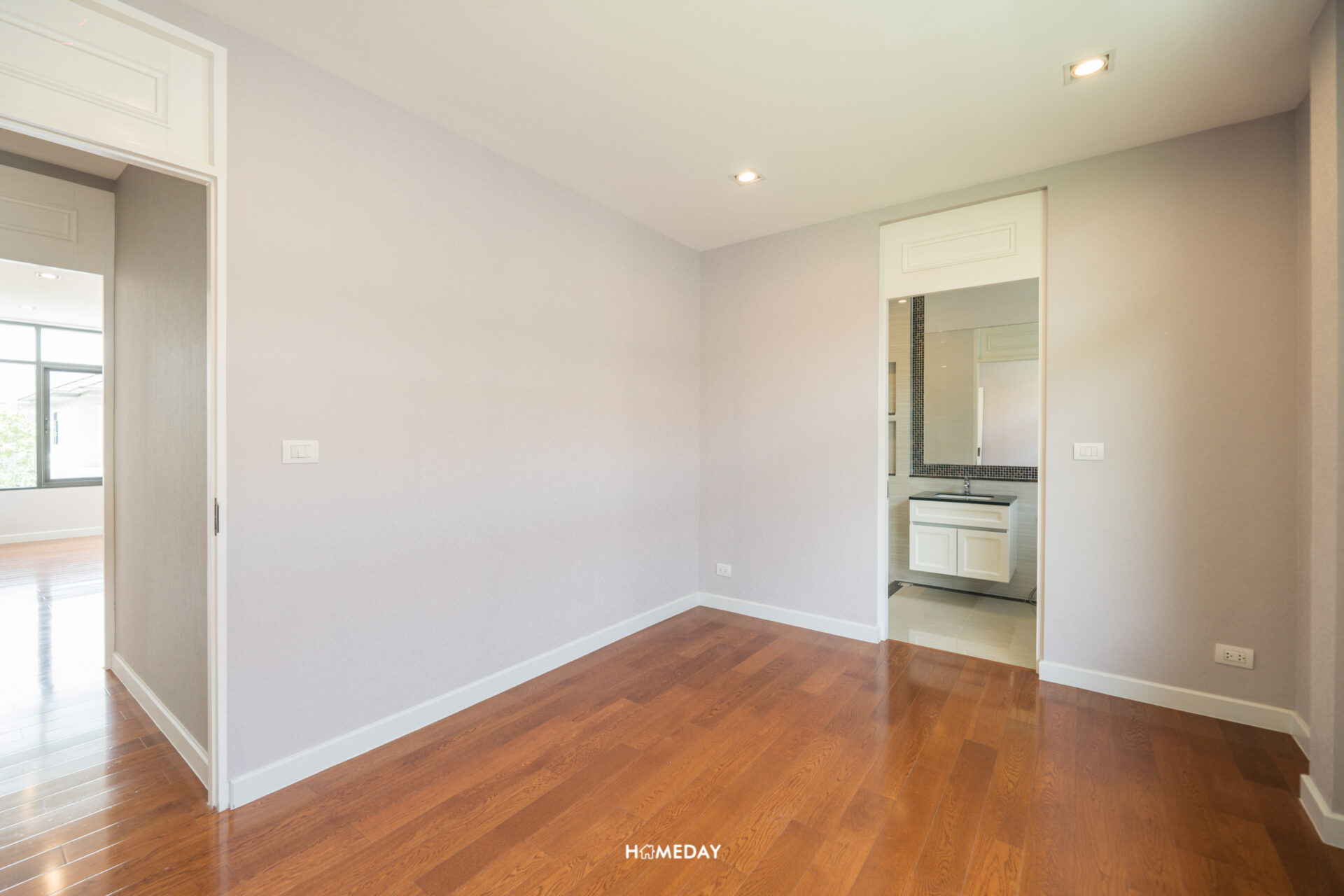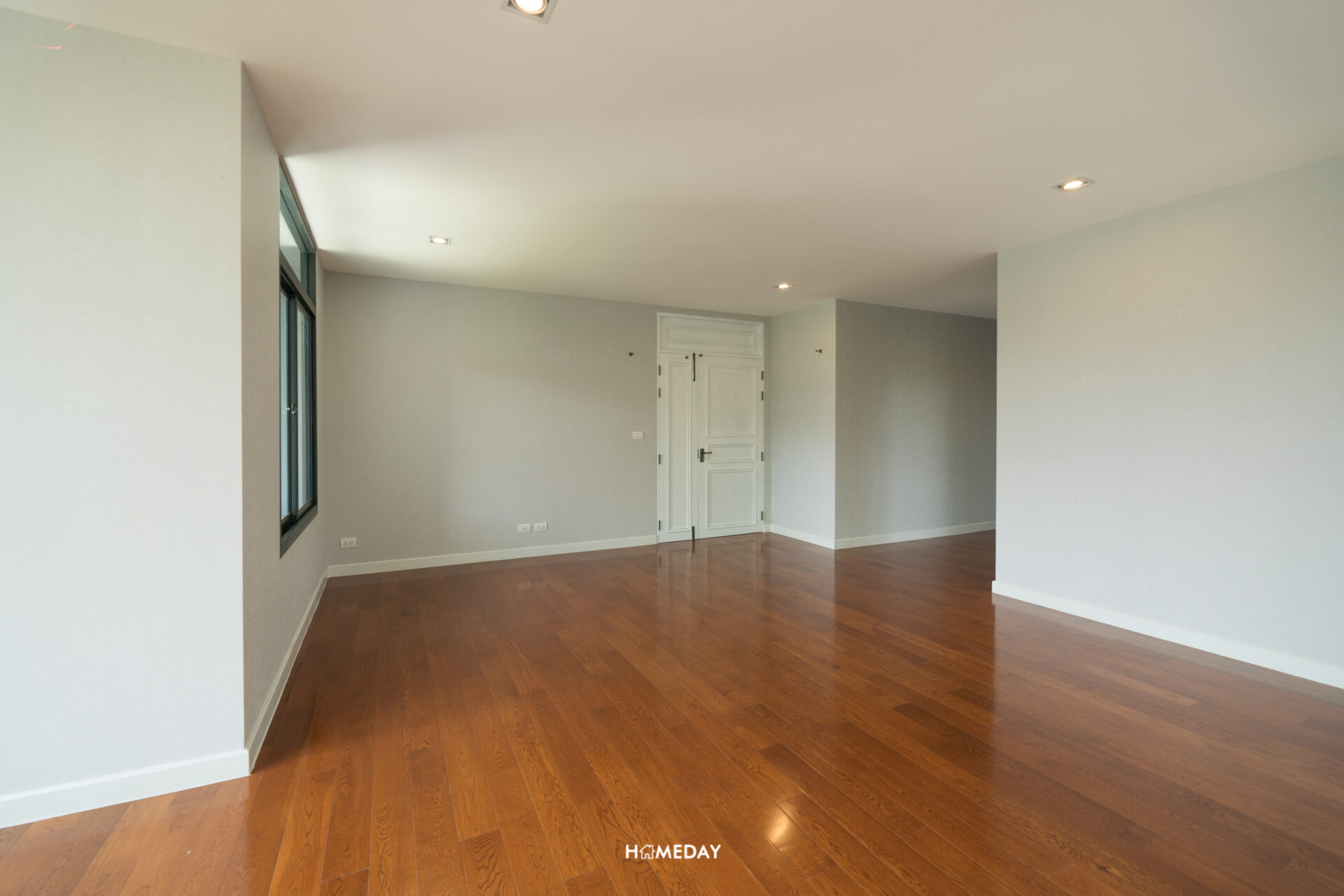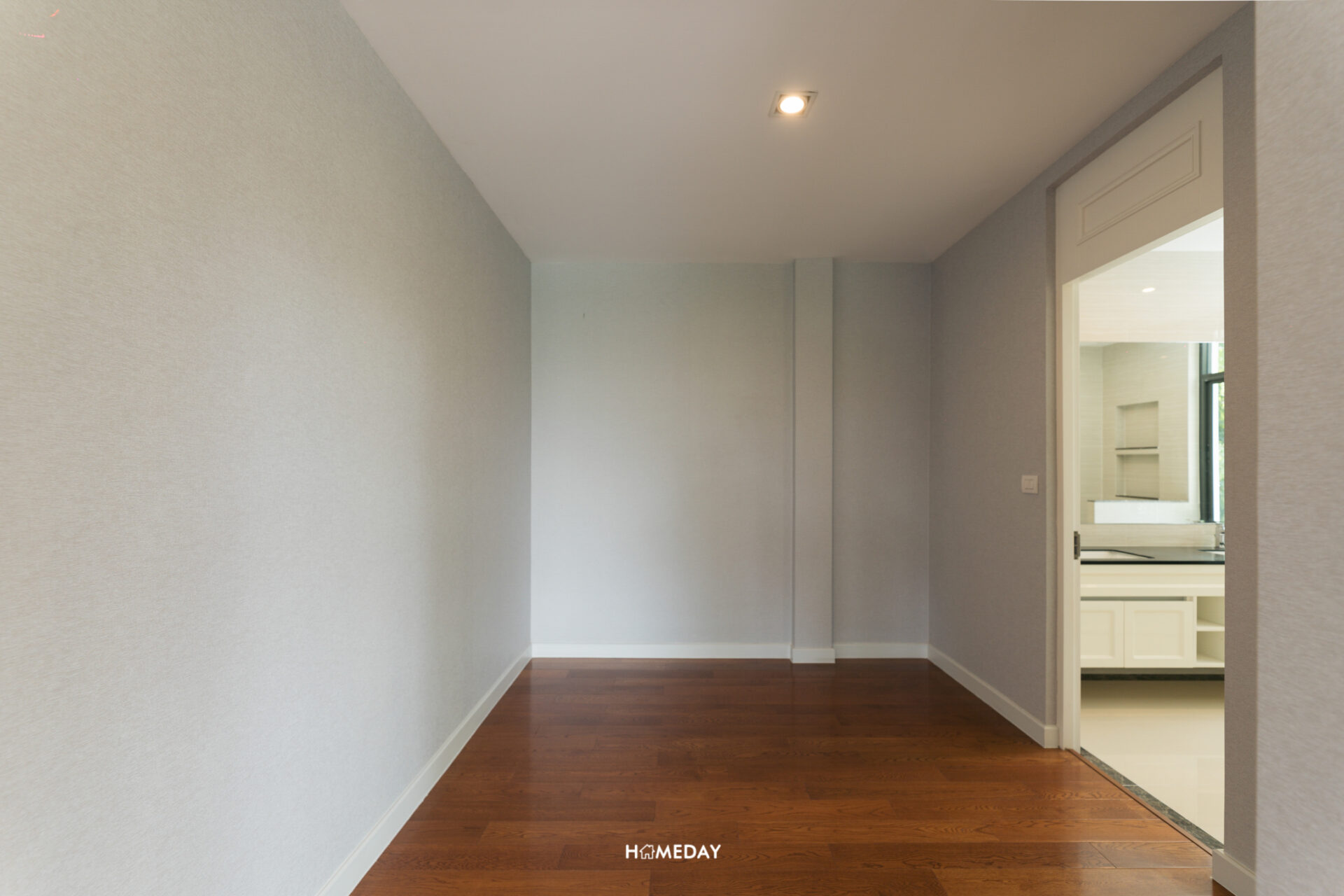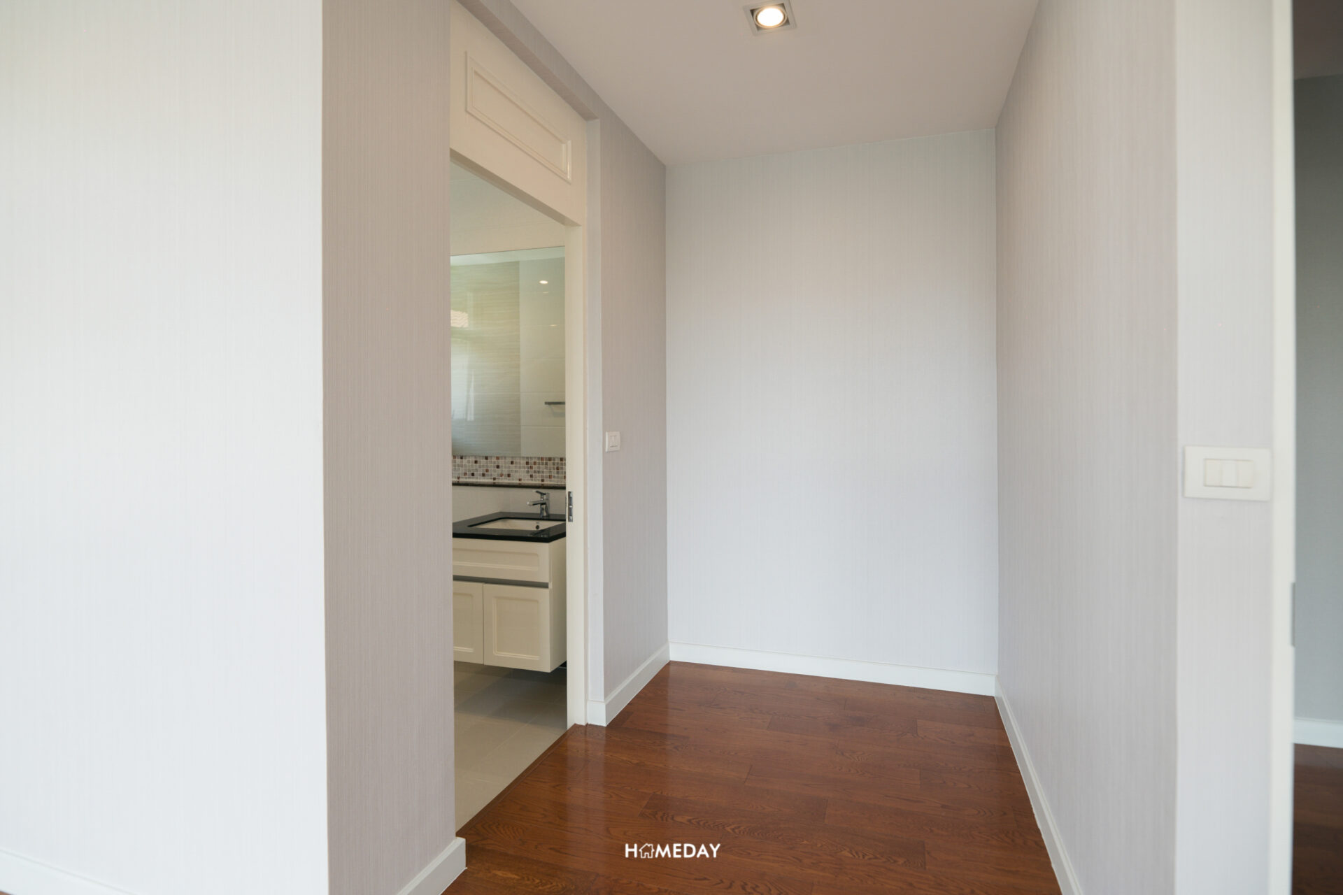 ภาพจากอีกมุม หันไปยังประตูทางเข้า ซ้ายมือจะเป็นโถงอีกฝั่งที่รองรับสำหรับการบิลต์อิน Walk-in Closet ครับ ซึ่งก็จะอยู่เชื่อมกับ Master Bathroom ของห้อง ทำให้หยิบเสื้อผ้าใช้งานได้อย่างสะดวก ลงตัวมาก ๆ