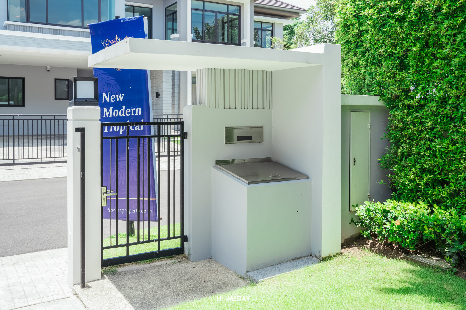 ถังขยะและตู้ไปรษณีย์ ออกแบบมาให้ใช้งานได้ง่ายจากภายในรั้วบ้าน ไม่ต้องเดินออกไปทิ้งขยะหรือออกไปเช็กจดหมายด้านนอก สามารถกันน้ำกันฝนได้เป็นอย่างดี หมดกังวลได้เลยครับ