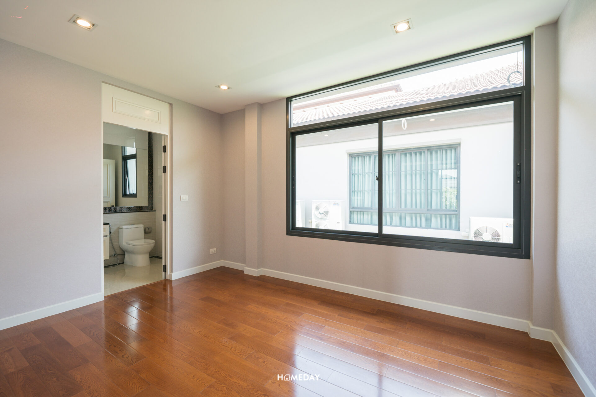 Master Bedroom จะอยู่ขวามือจากบันได ห้องนี้จะได้พื้นที่ตั้งแต่หน้าบ้านไปจนถึงหลังบ้านเลยครับ ขนาดห้องกว้างมาก ตอบโจทย์การอยู่อาศัยสำหรับ 2 ท่านได้อย่างลงตัว ภายในได้หน้าต่างขนาดใหญ่รอบ รับแสงธรรมชาติได้อย่างเต็มที่ครับ