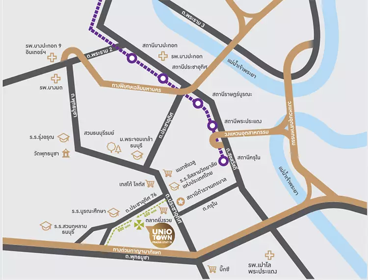 ทำเลที่ตั้ง พระราม 2 อำเภอเมืองสมุทรสาคร จังหวัดสมุทรสาคร สิ่งอำนวยความสะดวกรอบโครงการ สถานศึกษาโรงเรียนนานาชาตินอร์ริช 4 กม.โรงเรียนอัสสัมชัญ แคมปัส พระราม 2 6 กม.มหาวิทยาลัยเทคโนโลยีพระจอมเกล้าธนบุรี 21 กม.