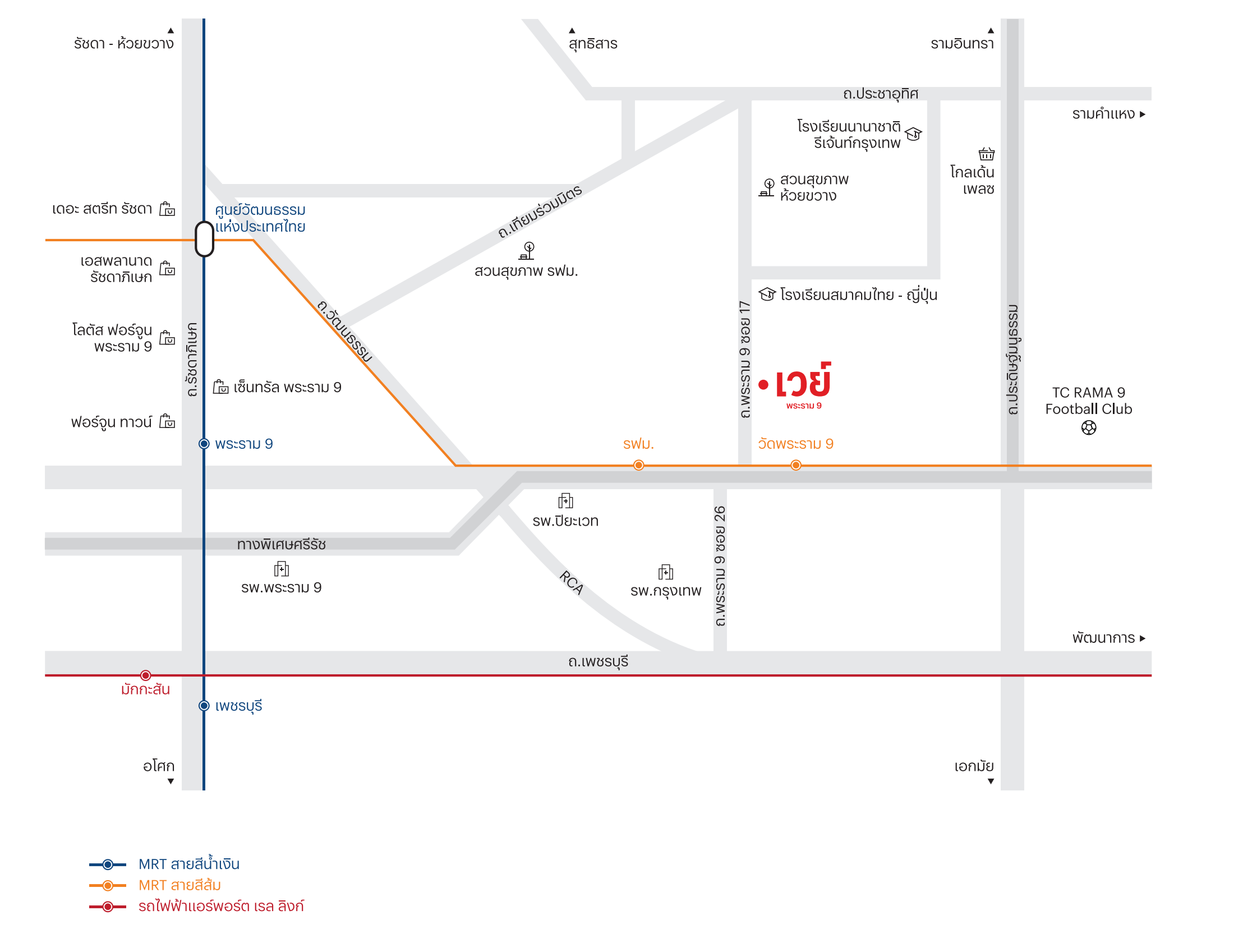 ไม่มีสะดุด ใจกลางพระราม 9 ทำเลทอง ซอย 17 เชื่อมต่อไวทั้งถนนพระราม 9 และเทียมร่วมมิตร รายล้อมด้วยแหล่งแฮงก์เอาต์ ครบครันทั้งช้อปปิ้งที่เซ็นทรัล พระราม 9 และฟอร์จูน ทาวน์ พร้อมอุ่นใจทุกเวลา เพราะใกล้โรงพยาบาลชั้นนำ (รพ.พระราม 9, รพ.กรุงเทพ และ รพ.ปิยะเวท) จัดสเปซชีวิตให้ลงตัวได้ง่ายๆ ครบจบในย่านเดียว
