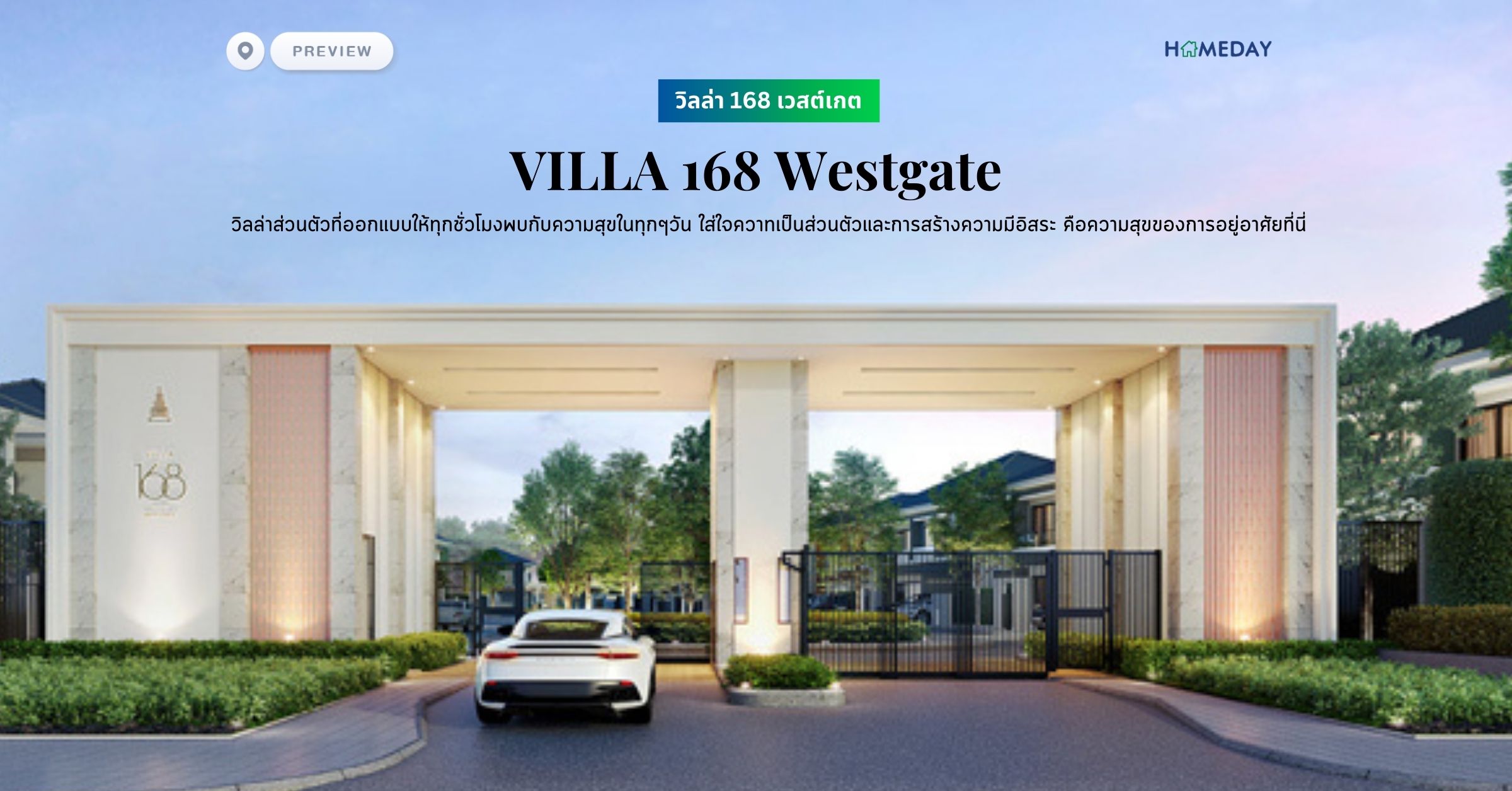 "โครงการ วิลล่า 168 เวสต์เกต (VILLA 168 Westgate) วิลล่าส่วนตัวที่ออกแบบให้ทุกชั่วโมงพบกับความสุขในทุกๆวัน โอบล้อมด้วยธรรมชาติและความเป็นส่วนตัว เติมเต็มคุณภาพชีวิตที่ดียิ่งขึ้น ใส่ใจควาทเป็นส่วนตัวและการสร้างความมีอิสระ คือความสุขของการอยู่อาศัยที่นี่"