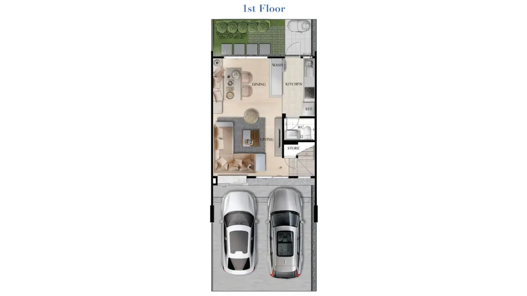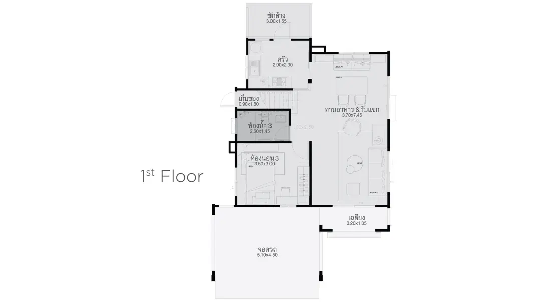 แบบบ้าน : WAYFARING หน้ากว้าง 5.7 x 13.0 ม. พื้นที่ใช้สอย 115.9 ตร.ม. ขนาดที่ดินมาตรฐาน 18.50 ตร.ว.ห้องนอน 3 ห้อง ห้องอเนกประสงค์ 1 ห้อง ห้องน้ำ 2 ห้อง ที่จอดรถ 2 คัน