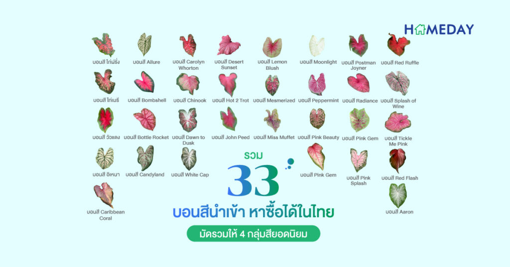 รวม 33 บอนสีนำเข้า หาซื้อได้ในไทย มัดรวมให้ 4 กลุ่มสียอดนิยม